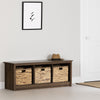 The Contemporary style of this mudroom bench will help create an inviting atmosphere in your home. The sleek design, with its open compartments and straight lines, will easily match your decor. Place baskets (not included) in the spaces under the seat and select original cushions for the top, to add a touch of originality. You’ll also have space on the wall above it for hooks or an inspiring work of art. Getting home will feel so good. Invite friends and family to your home and keep your entryway tidy with the help of this bench. Put slippers, or baskets filled with things for outdoor activities, in the three compartments under the seat. You could even label each basket with a family member’s name, to personalize your entryway. It’ll be so nice to have easy access to mittens, gloves, and scarves… without the mess.