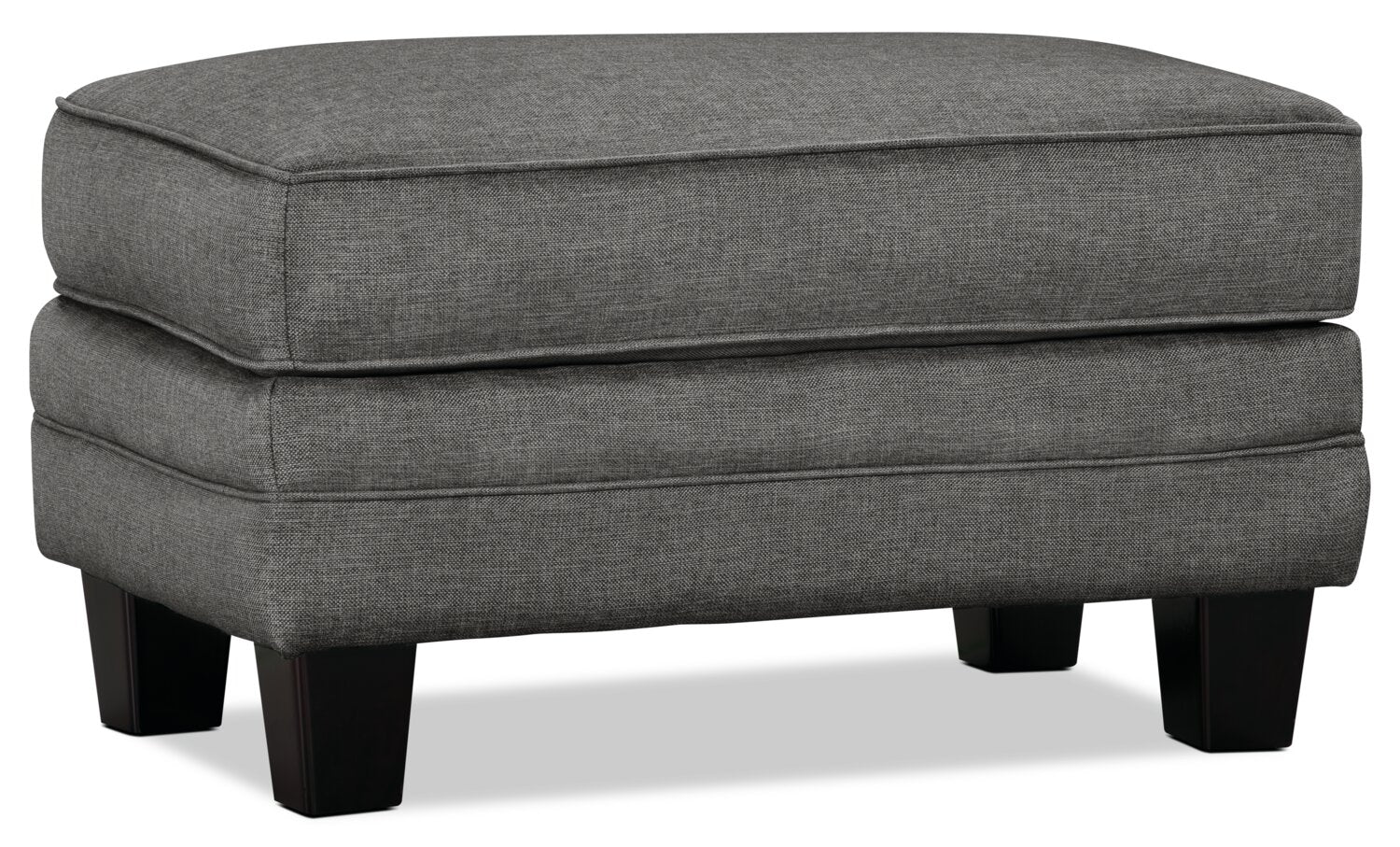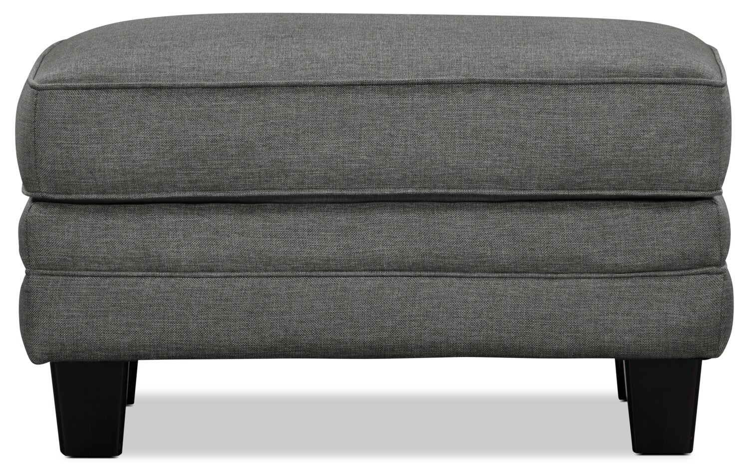 Turn your living space into a comforting and inviting area by adding this steel-coloured Tula ottoman. Soft fabric covers this piece in cool grey for a classic look you can pair with many different decor options. Plus, matching fabric piping outlines all the edges to give the footrest an elevated look. A thick top cushion is packed with high-density foam so your feet have a cozy place to unwind. With plastic legs finished in a mocha hue, this Tula ottoman will amaze your family and friends with its elegance.