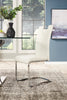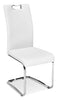 Equal parts swagger and smarts, your dining room will eagerly welcome this Tuxedo side chair. From top to bottom, this lightweight and sturdy chair delights in its bright appearance and subtle design details. The stainless steel legs hug the floor for a gravity-defying look. Meanwhile, the seat and backrest are wrapped in soft faux leather which will please your touch as well as your eyes. So follow its cue and lean back in lavish relaxation.