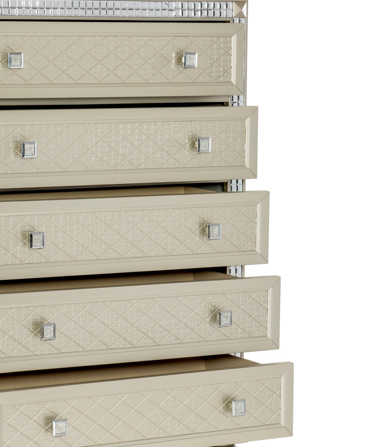 | Accent Details | Mirror trim, textural embossing |