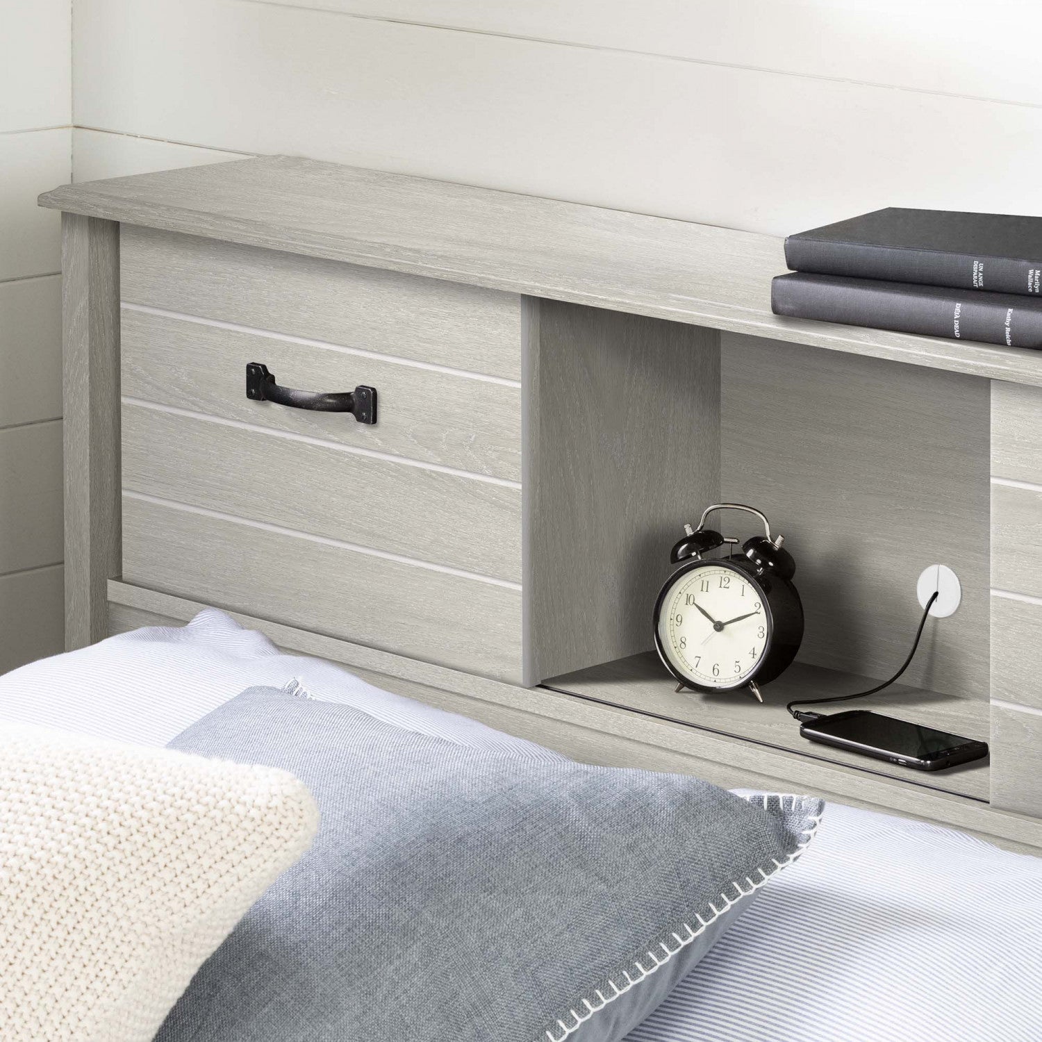This rich and timeless headboard will help create a soothing atmosphere in your kid's bedroom. With its many easy to access open storage compartments, this bookcase headboard is perfect for fulfilling bedside storage needs, keeping your reading materials and personal items organized and close at hand when you need them. This timeless bookcase headboard features two sliding doors and three practical open storage spaces separated by sturdy and reliable fixed shelves. You'll be able to organize books and electronics and these spaces. A hole in the back panel was added to hide cables and and allow them to pass through, for better wire management.