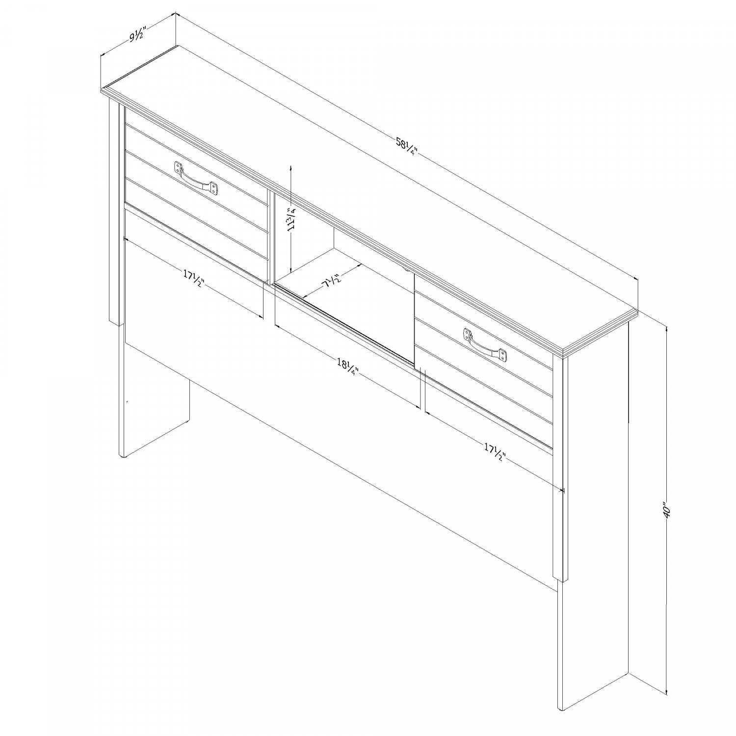 Width: 58.25" (148.0 cm) Height: 40" (101.6 cm) Depth: 9.5" (24.1 cm)