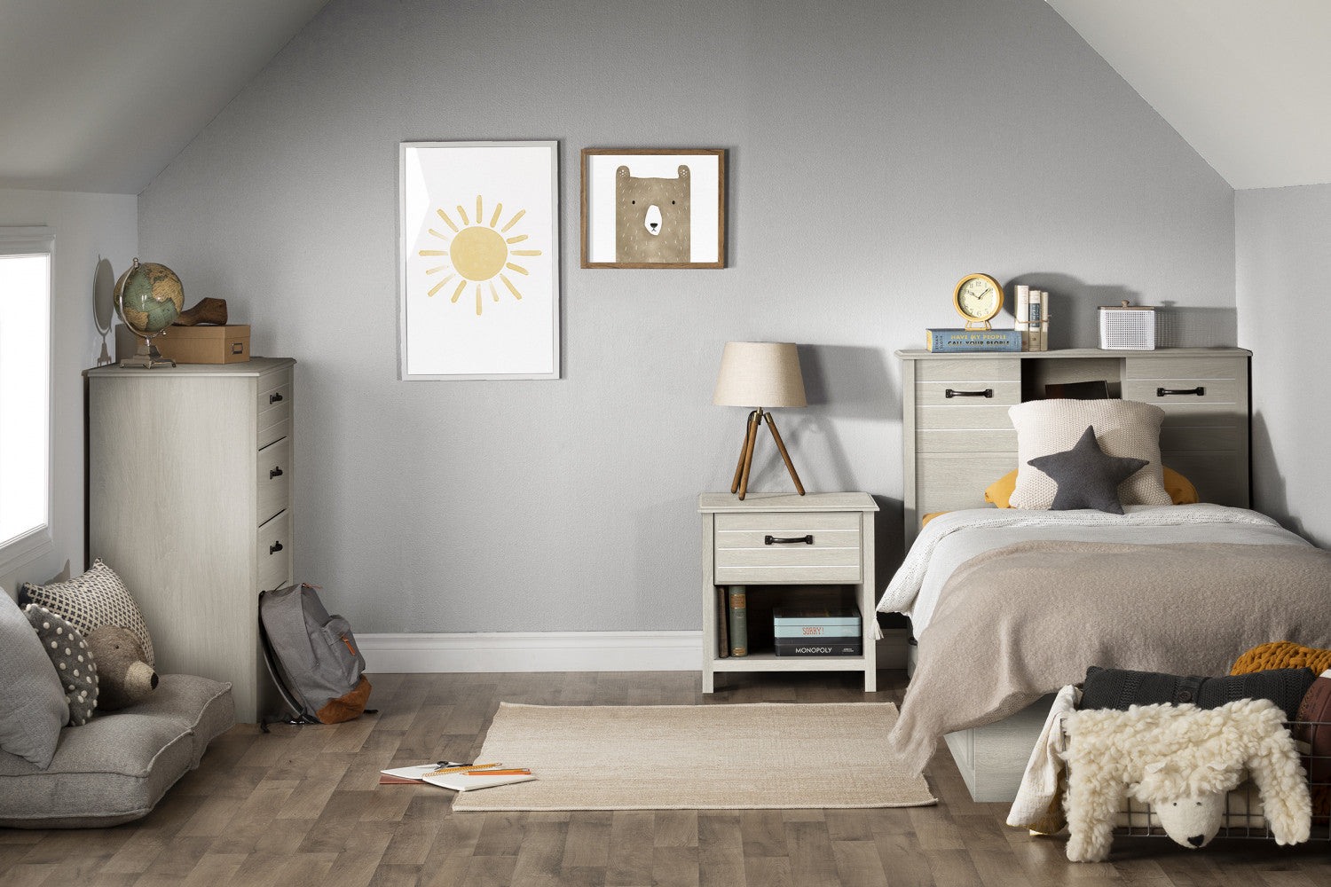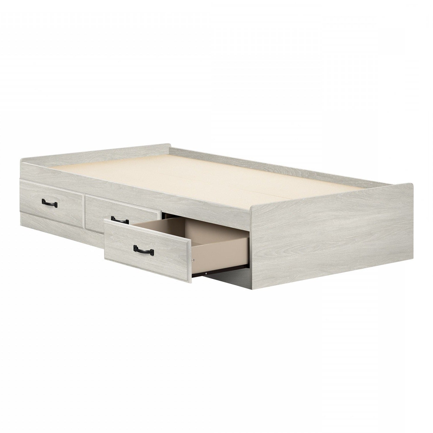 This mates bed from the Ulysses collection offers timeless detail for any classic room. Featuring 3 spacious drawers with beveled edges, and curved metal handles, this bed not only adds style but helps you stay organized. This bed is perfect for all ages as each corner has been rounded for additional safety. Featuring plenty of storage for clothes, bedding or seasonal items, this mates bed has 3 convenient drawers with smooth opening metal slides. All 3 drawers are on the same side of the bed frame, which is reversible, allowing the drawers to be accessed from either side. The bed is an economic choice as it does not require a box spring.