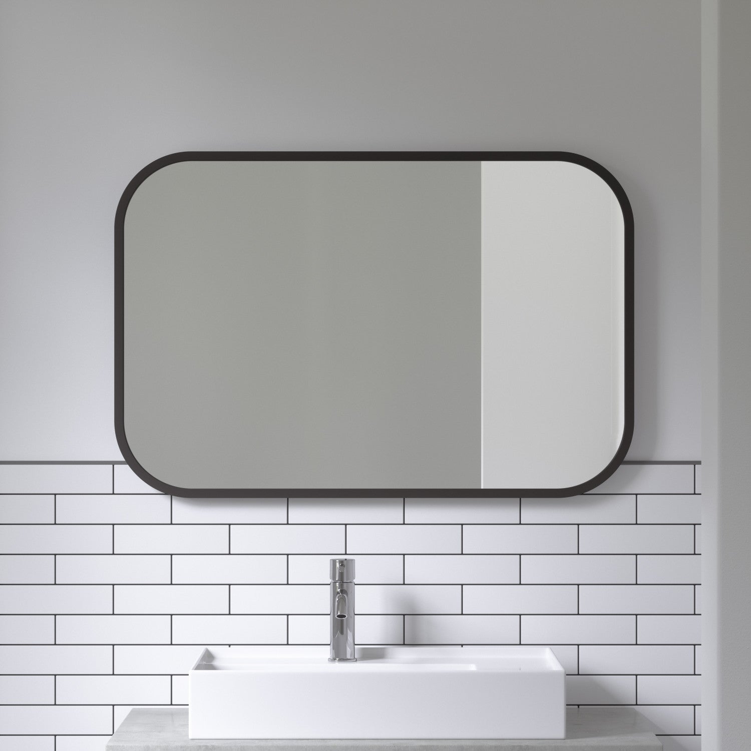 Hub mirror rectangular brings a fun and new shape to the classic hub mirror family. Hub mirror will not only brighten your space but adds visual depth to make it appear larger. With its modern black rubber rim that doubles as a protective bumper, this decorative mirror makes a perfect statement piece in any room.