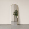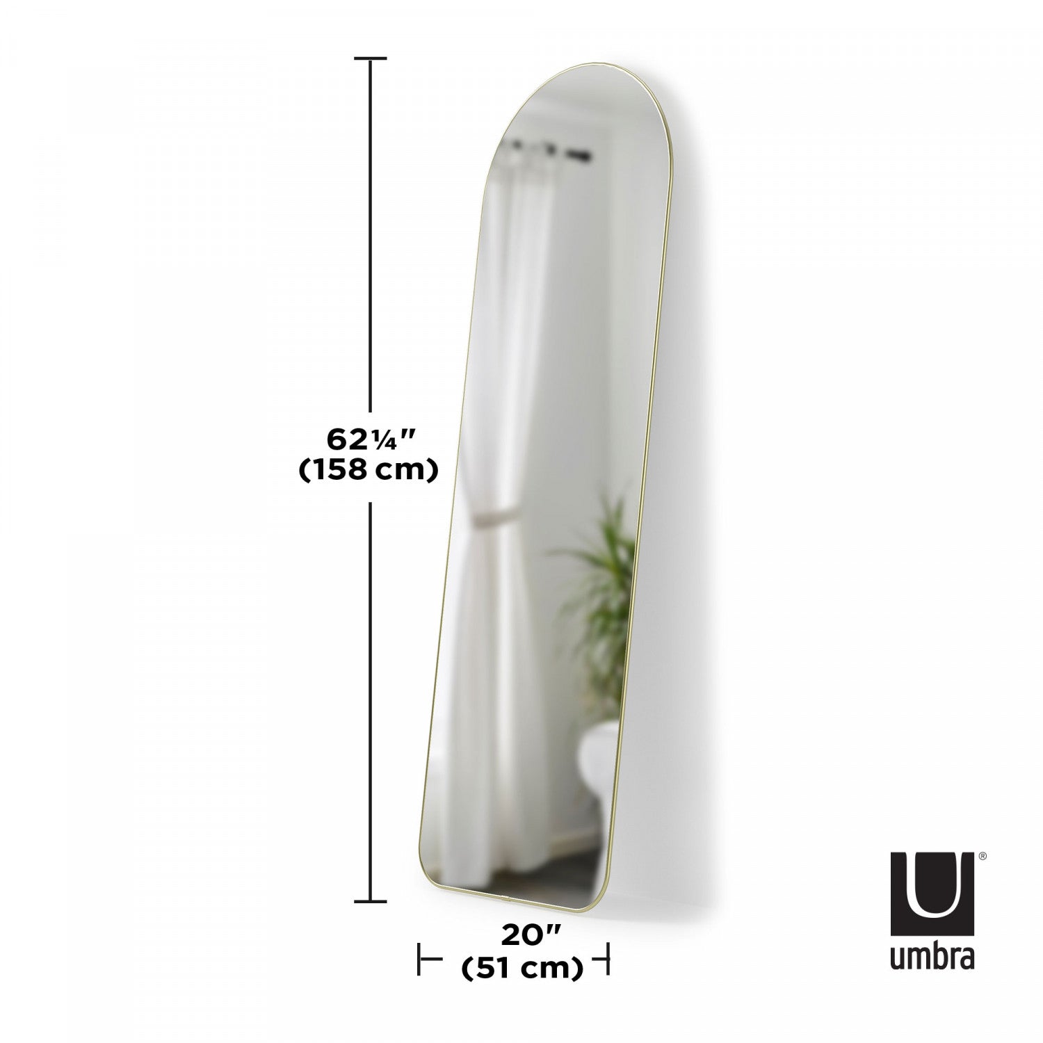 Elevate your space with the Hubba arched leaning mirror, a modern take on the classic floor mirror. Its unique arch shape and thin metallic frame bring a soft, elegant touch to any room, while its large reflective surface brightens and visually expands your space. Perfect for entryways, bedrooms, or living areas, Hubba adds both style and function. It can be securely wall-mounted or leaned against a wall with included anti-tip hardware. Please note: Hubba is designed for vertical display only and cannot be hung horizontally.