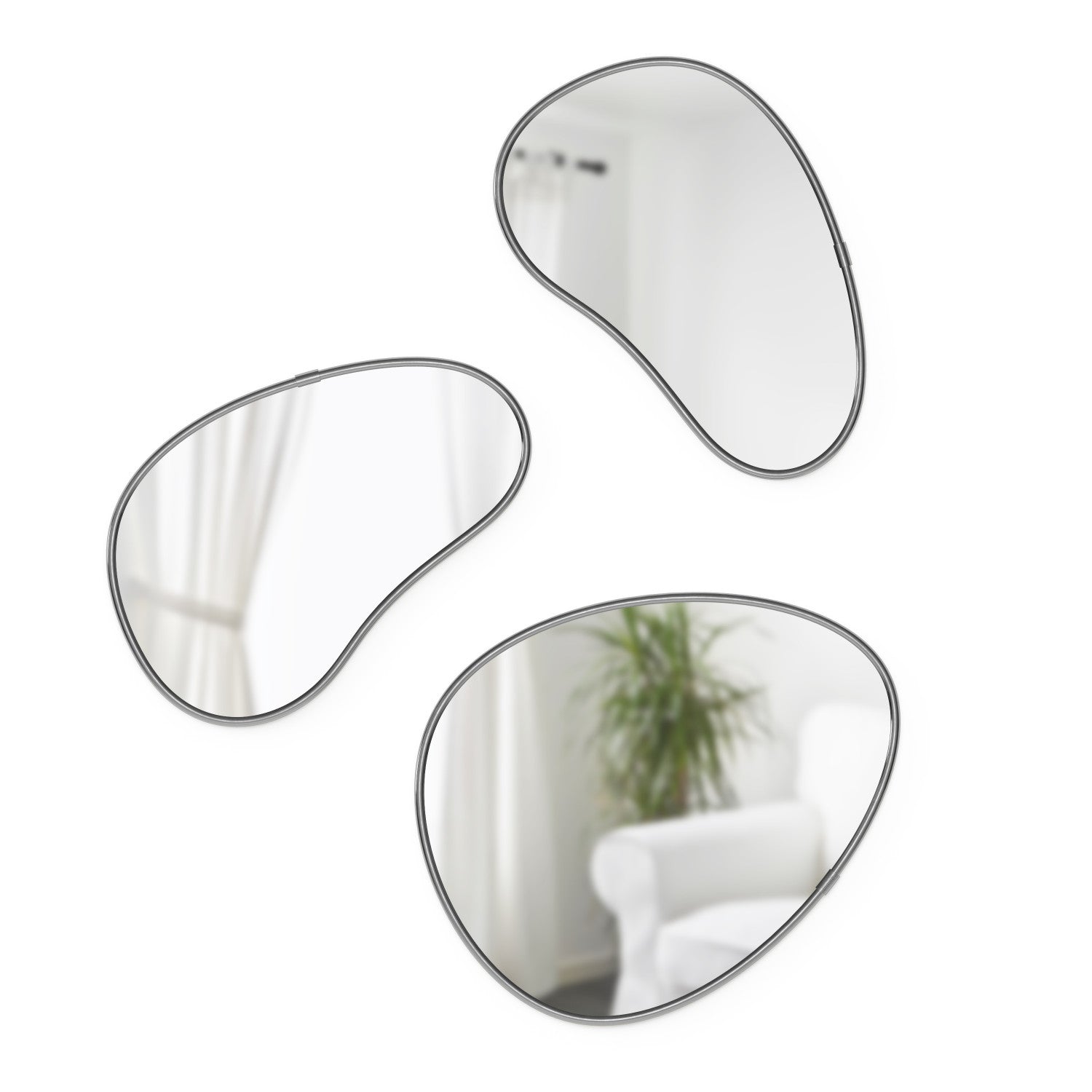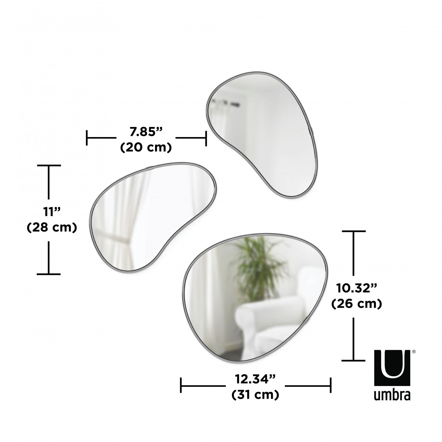 This unique, set of 3 organic-shaped mirrors are a new addition to our Hubba family. Easy to install with included adhesive strips, hang pebble in a way that best fits your space. This playful set of mirrors make a perfect addition to a variety of spaces in the home - from entryway to bathrooms, playrooms and more.
