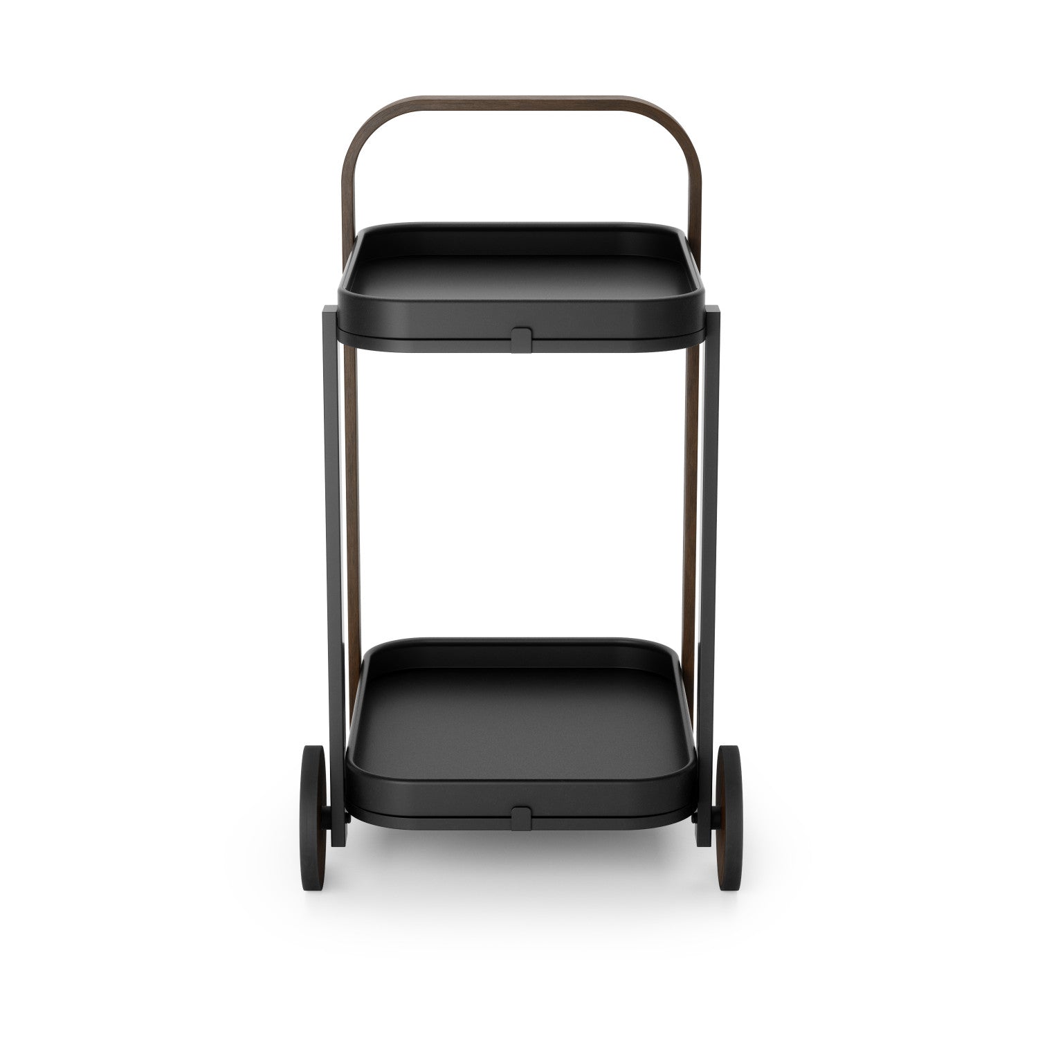 Upgrade your entertaining game with the stylish Bellwood bar and storage cart. This modern, two-toned wooden cart is versatile and perfect for any corner of your home. Use it to create your own at-home bar setup, indoor garden cart, or side table. With rubber-rimmed wheels, you can easily move it around or remove a tray to serve on the go or clean. With two tiers, there's ample space for all your bar tools, stemware, decor and more. Assembly is a breeze with included instructions and hardware. The classic design adds a subtle hint of charm and sophistication to any room while keeping your essentials organized in style. Elevate your home decor instantly with the Bellwood bar and storage cart. Sourced from renewable wood sources and made with an eco-friendly finish. It produces 85% less water and solid waste than traditional electroplating finishes.