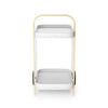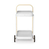 Upgrade your entertaining game with the stylish Bellwood bar and storage cart. This modern, two-toned wooden cart is versatile and perfect for any corner of your home. Use it to create your own at-home bar setup, indoor garden cart, or side table. With rubber-rimmed wheels, you can easily move it around or remove a tray to serve on the go or clean. With two tiers, there's ample space for all your bar tools, stemware, decor and more. Assembly is a breeze with included instructions and hardware. The classic design adds a subtle hint of charm and sophistication to any room while keeping your essentials organized in style. Elevate your home decor instantly with the Bellwood bar and storage cart. Sourced from renewable wood sources and made with an eco-friendly finish. It produces 85% less water and solid waste than traditional electroplating finishes.