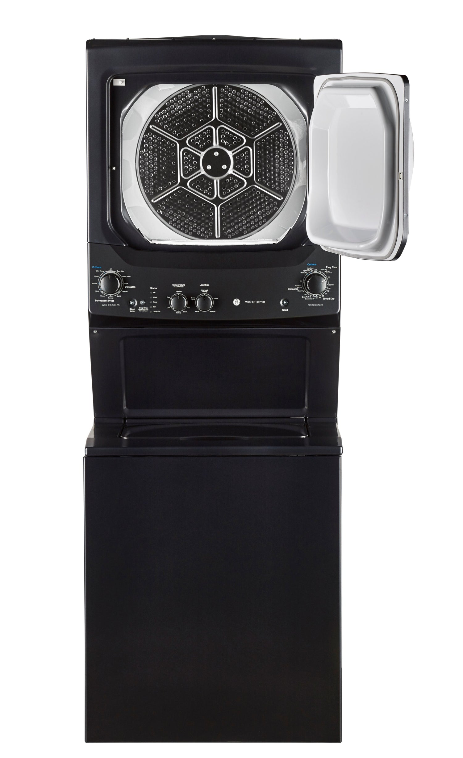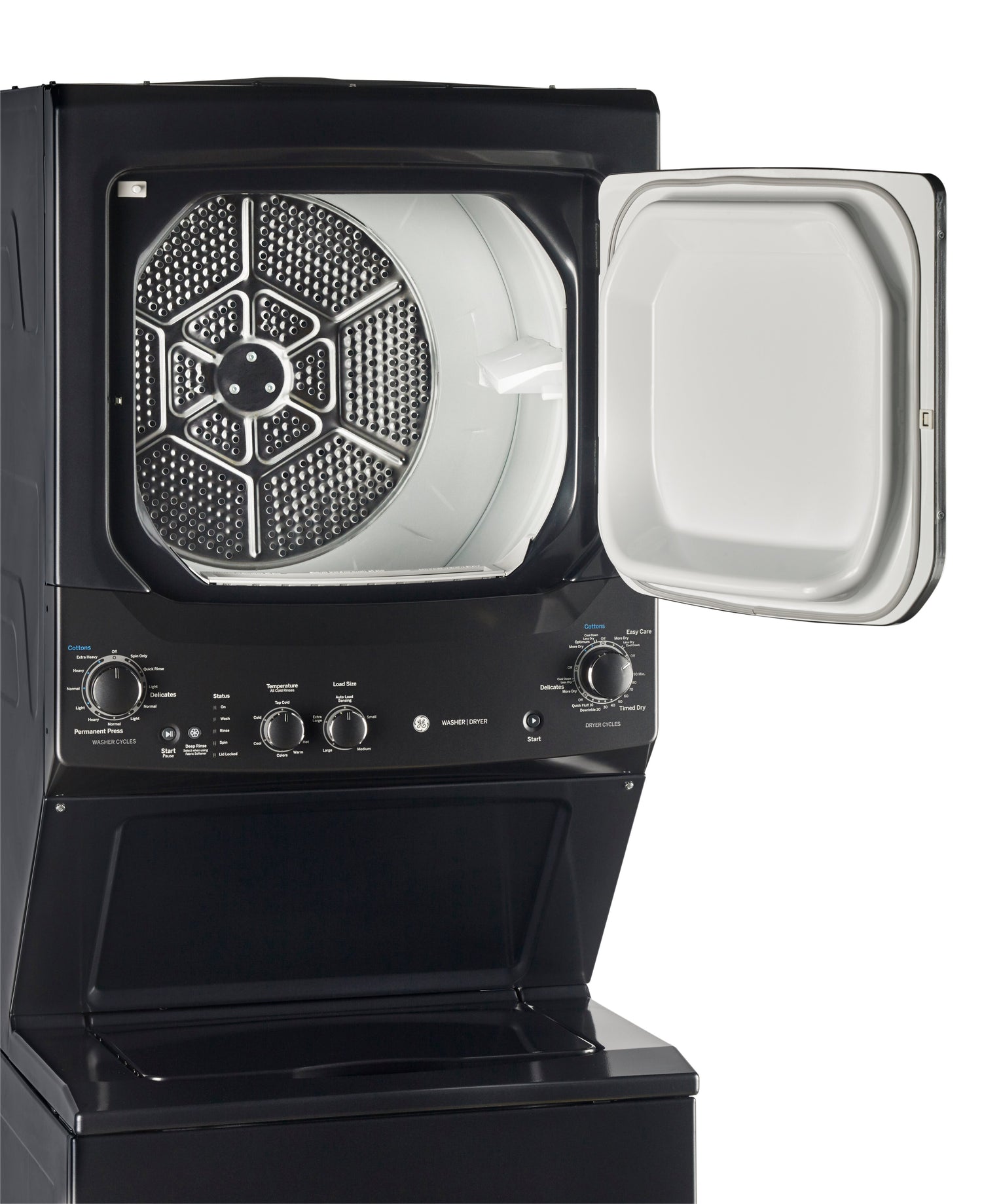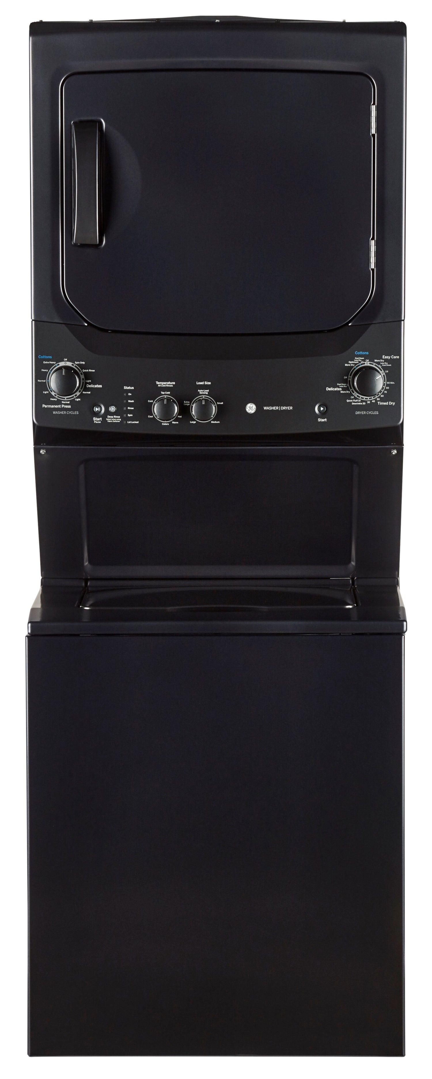 Perfect for apartments, condos and other small spaces, this GE Spacemaker™ washer and dryer combination is the compact solution to your family’s laundry woes. Measuring just 27 inches wide, this unit fits where other machines can’t but still boasts a large four-cubic-foot washer and six-cubic-foot dryer capacity. The stainless steel drum won’t rust or catch on clothing, so you can feel confident about washing even the most delicate of knits.
