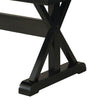 | Accent Details | Black table bases are connected by a classic wood trestle under the white and grey tabletop. |