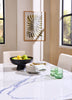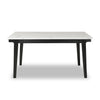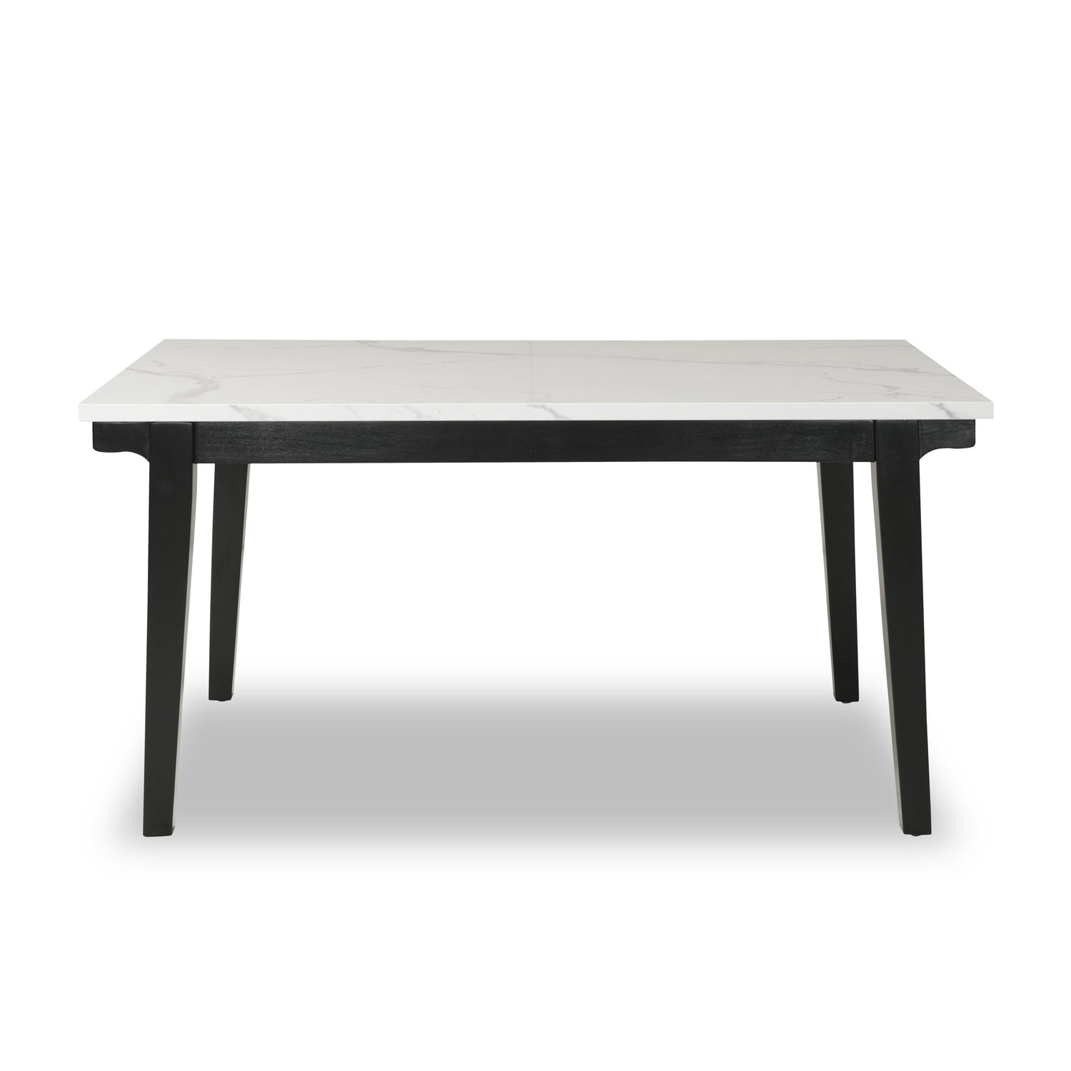 Dine at this fair Verona rectangular table and enjoy the beauty it brings to your home. The squared surface is covered with white cultured marble for a classically modern look. Veined with shades of grey, every tabletop will be unique to your dining space alone. Each of the black wood legs supports a stone slab corner for a visually stunning appearance. Ideal for hosting up to six guests, set the scene with this dramatic dining table.