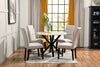 | Accent Details | Black table legs create a geometric look under the white and grey tabletop. |