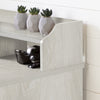 A desk with drawers and shelves. Organize your workspace with office supplies in the two upper drawers and file folders in the bottom one. The three drawers are of varying heights, so items of all sizes can fit… and the small fixed shelf under the work surface can hold your laptop when you’re not using it. The other shelf – at your feet – is intended for books you hardly ever use. A very handy hutch fixed dividers make the under shelf space ideal for storing envelopes and paperwork. The top of the hutch is fully open – great for keeping the things you like to have close at hand as you work. A traditional desk