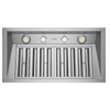 Designed and assembled in Canada, this range hood is made with high quality mechanical switches, an all metal blower and stainless steel filters making it efficient, easy to use and easy to clean. Can be used with a standard 6" round duct or an 8" round duct for better performance and a quieter experience. The bright warm dimmable LED lights provide great visibility and the filters are dishwasher safe and reusable. It's 15" depth gives you better coverage over your cooking surface while still having a sleek slim design that makes it easy to build custom cabinets around.