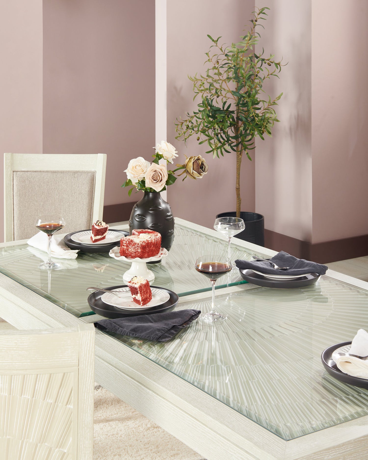 | Accent Details | A geometric pattern under the glass panels adds unique visual interest. |