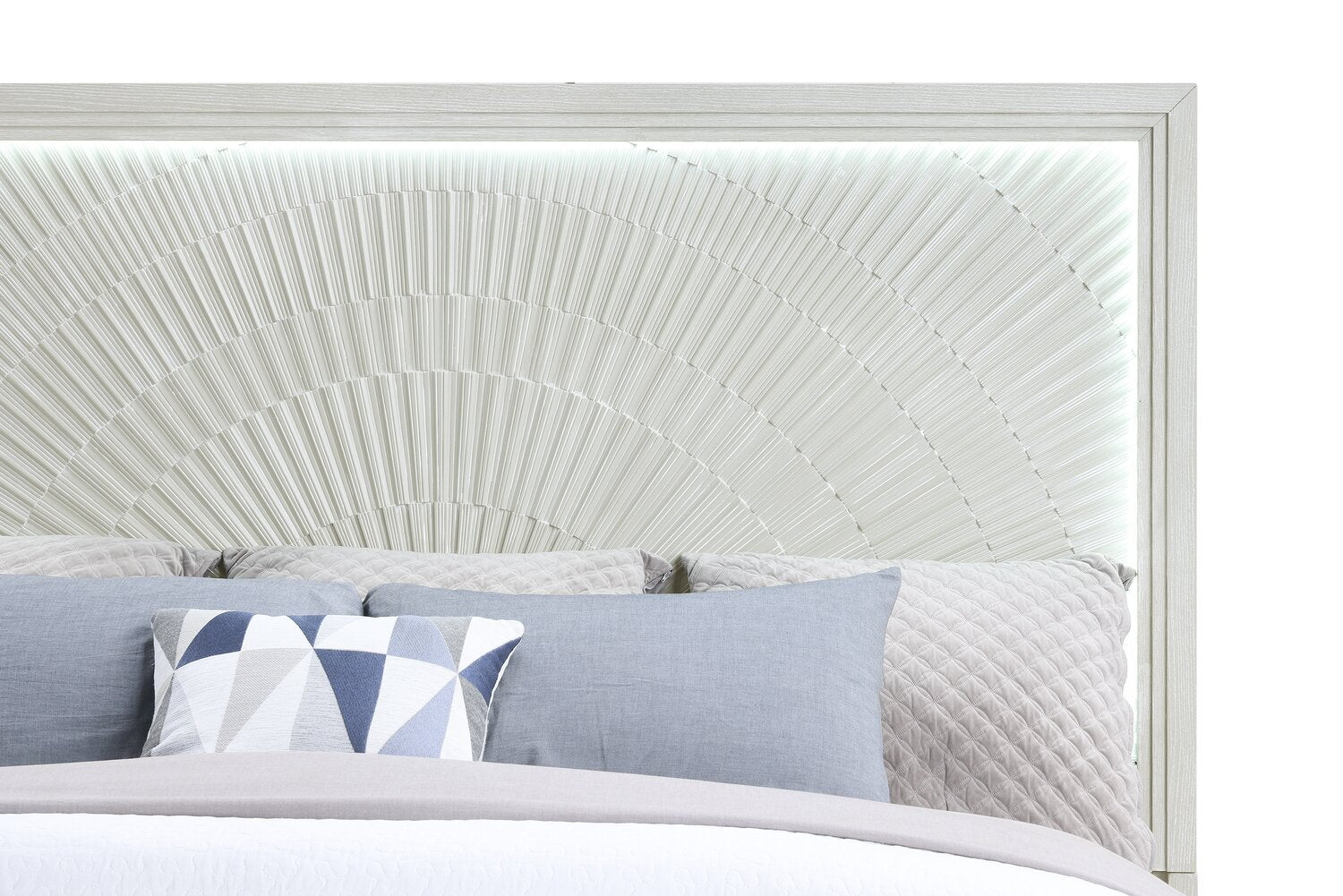 | Accent Details | Geometric relief detail on the headboard adds dimension and interest. |