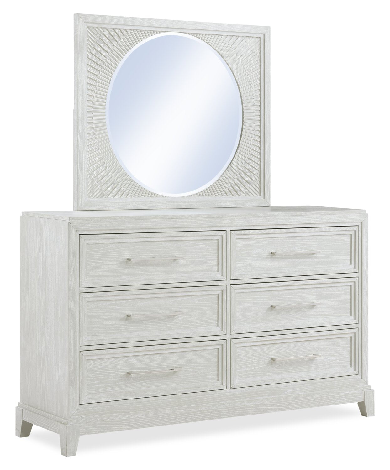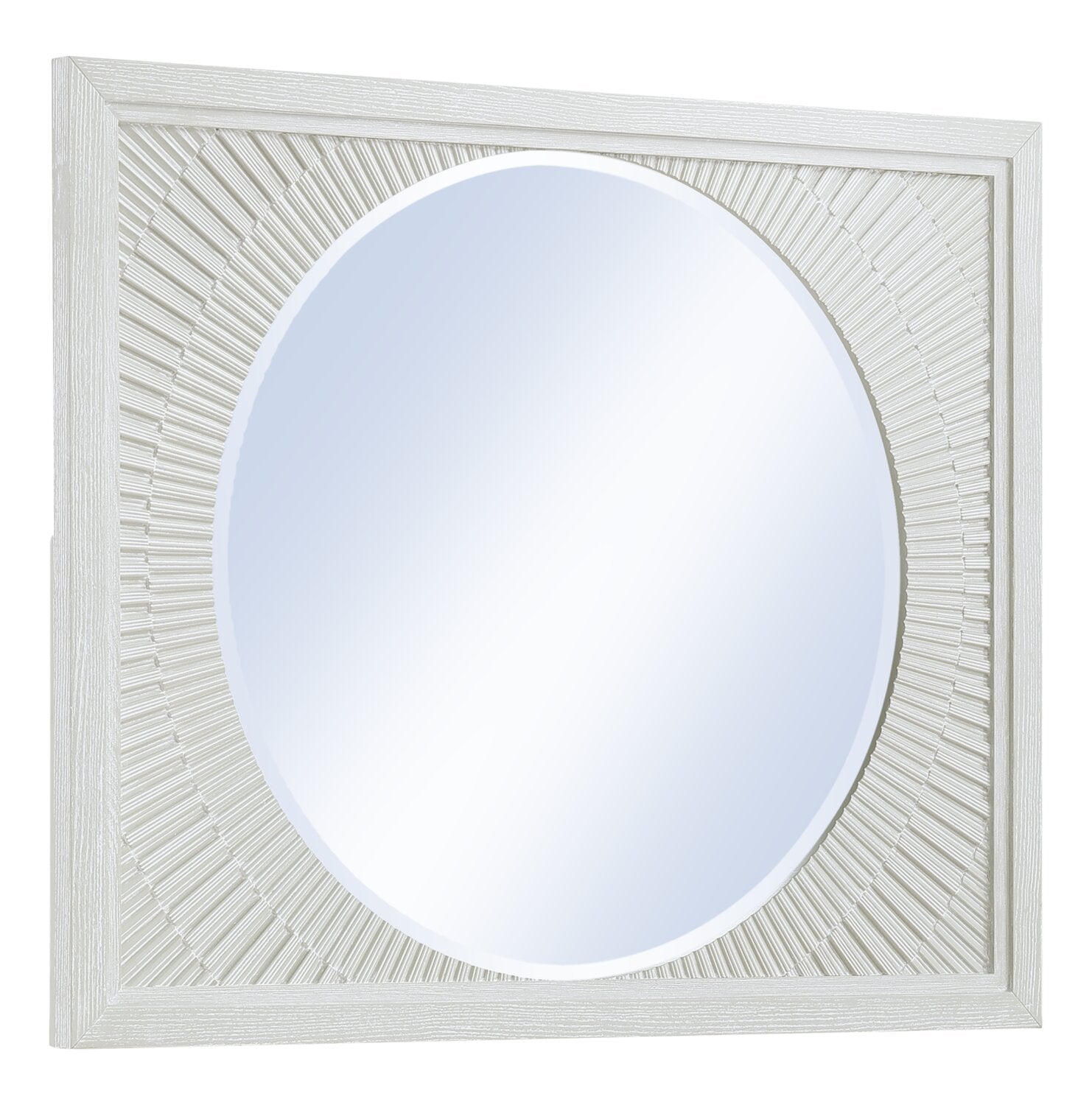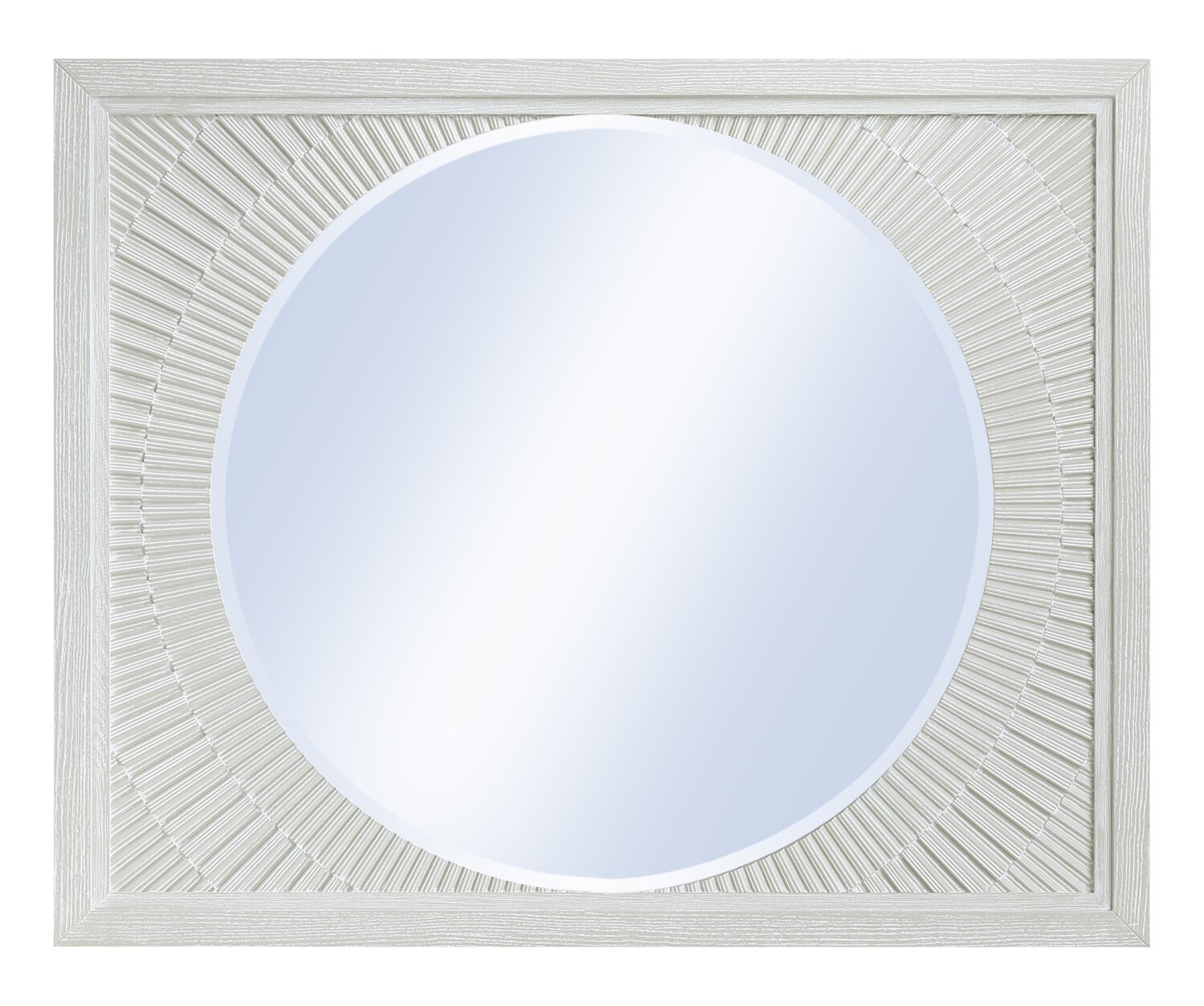 | Accent Details | Geometric relief detail frames mirror, adding dimension and interest. |