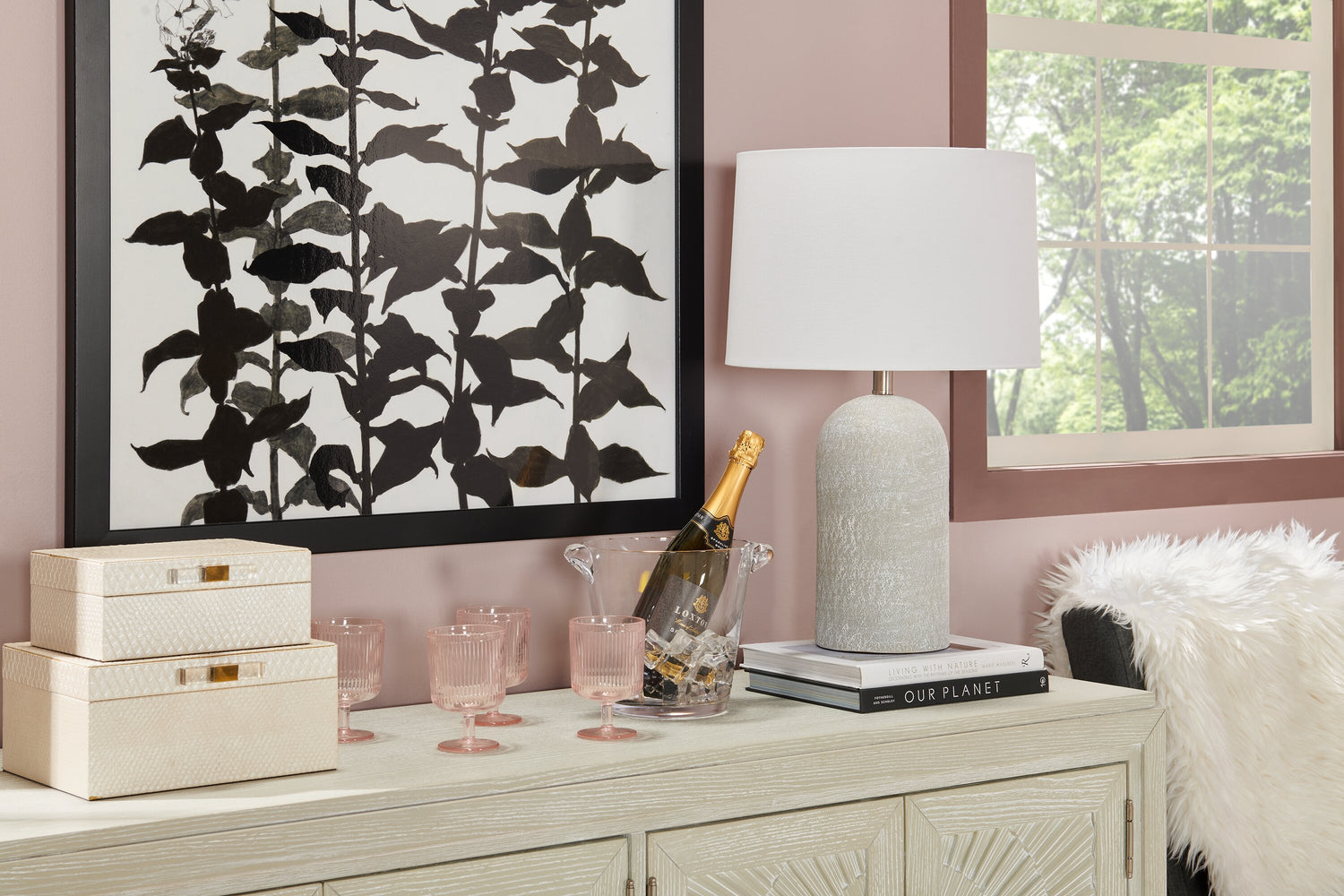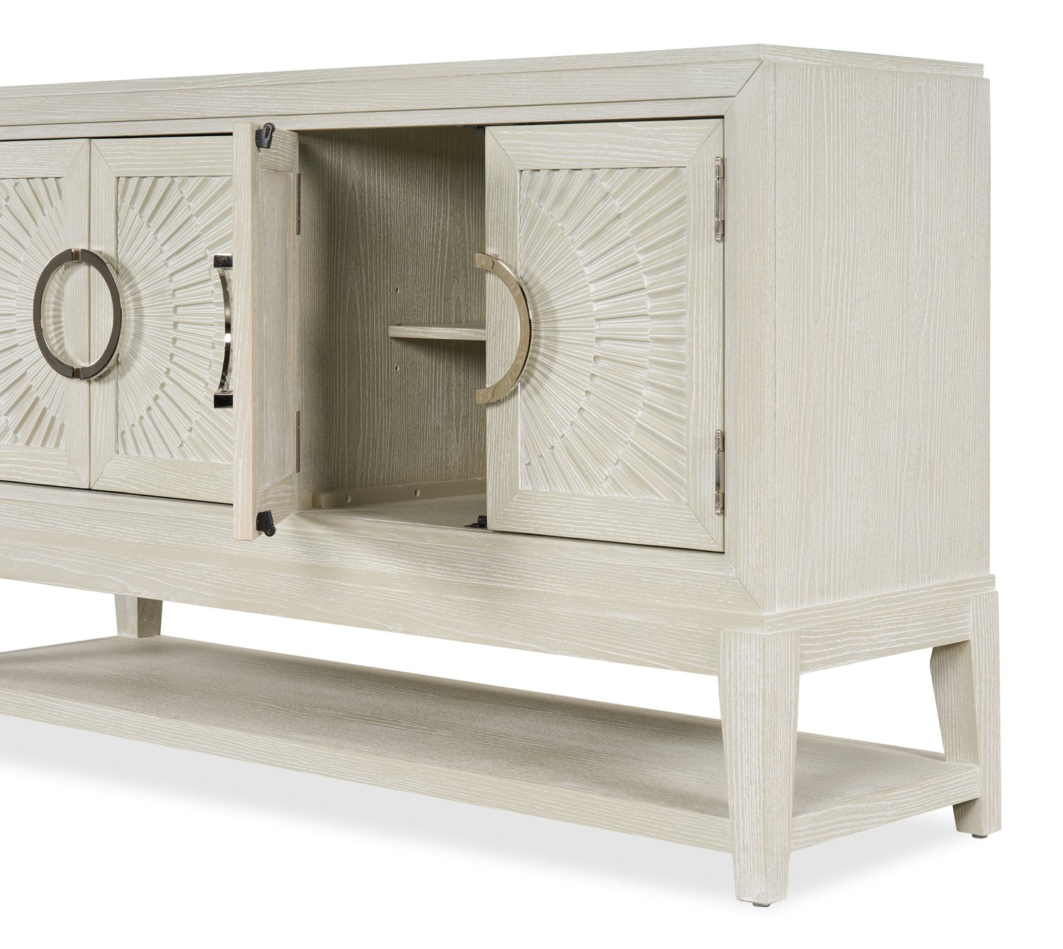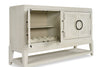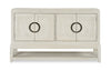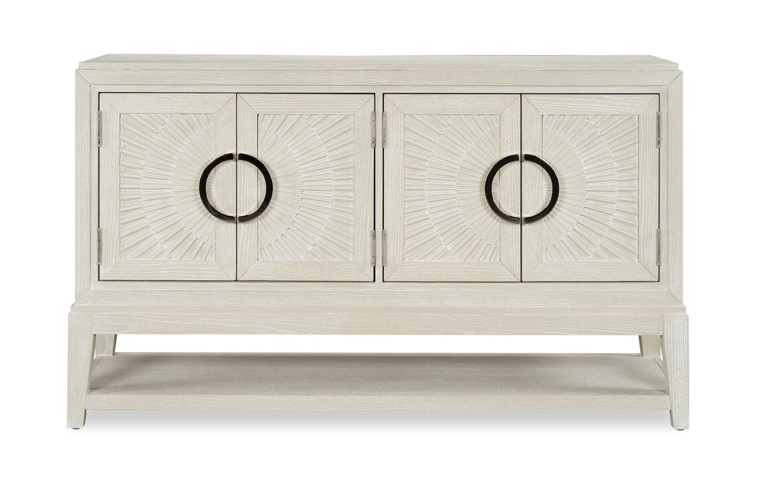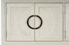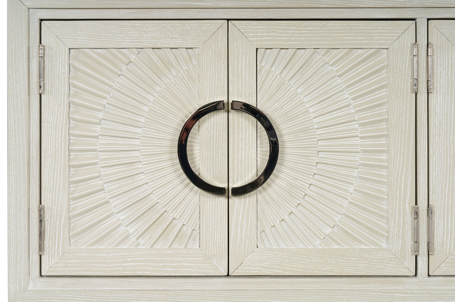 | Accent Details | An intricate circular design and half circle handles add visual interest. |