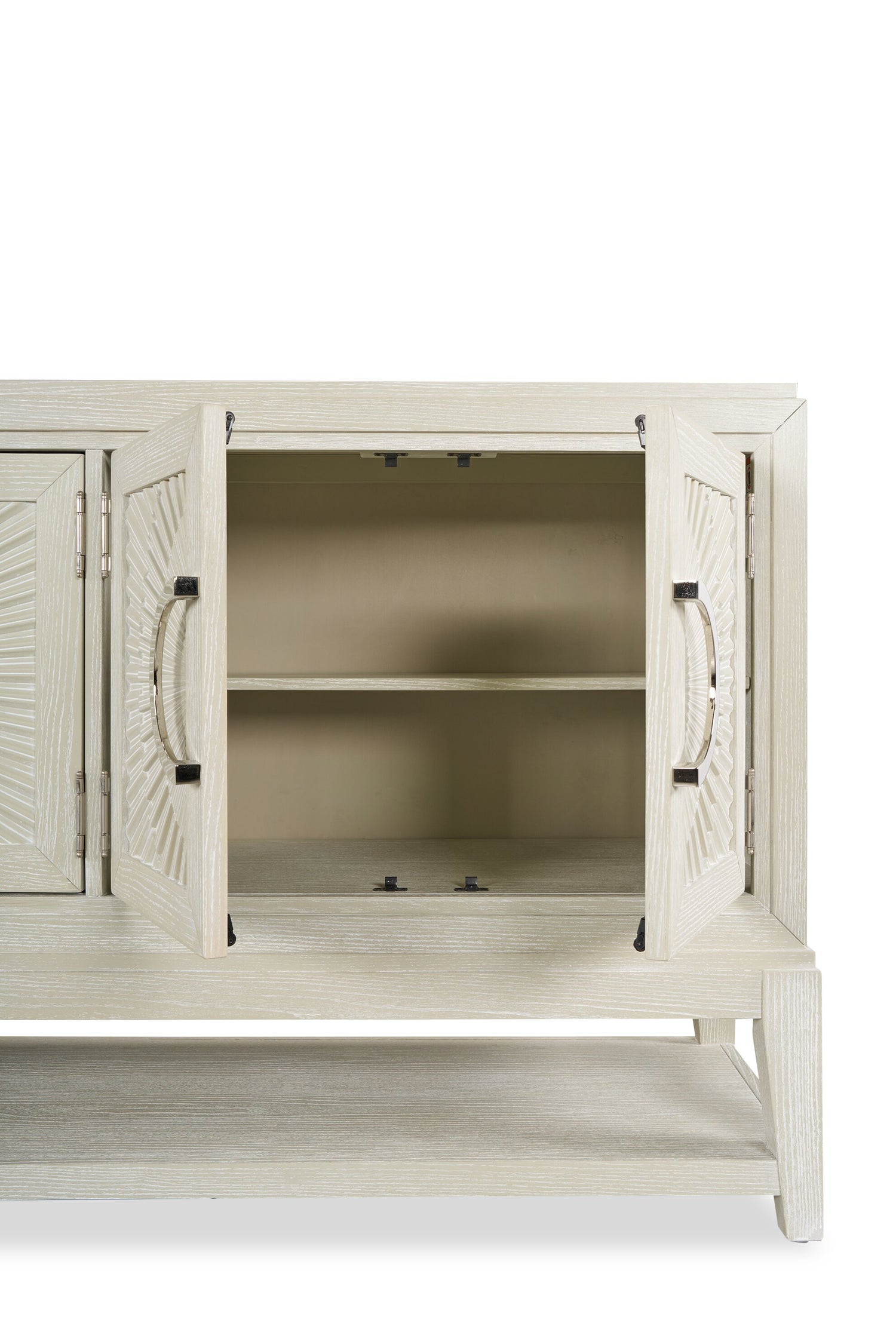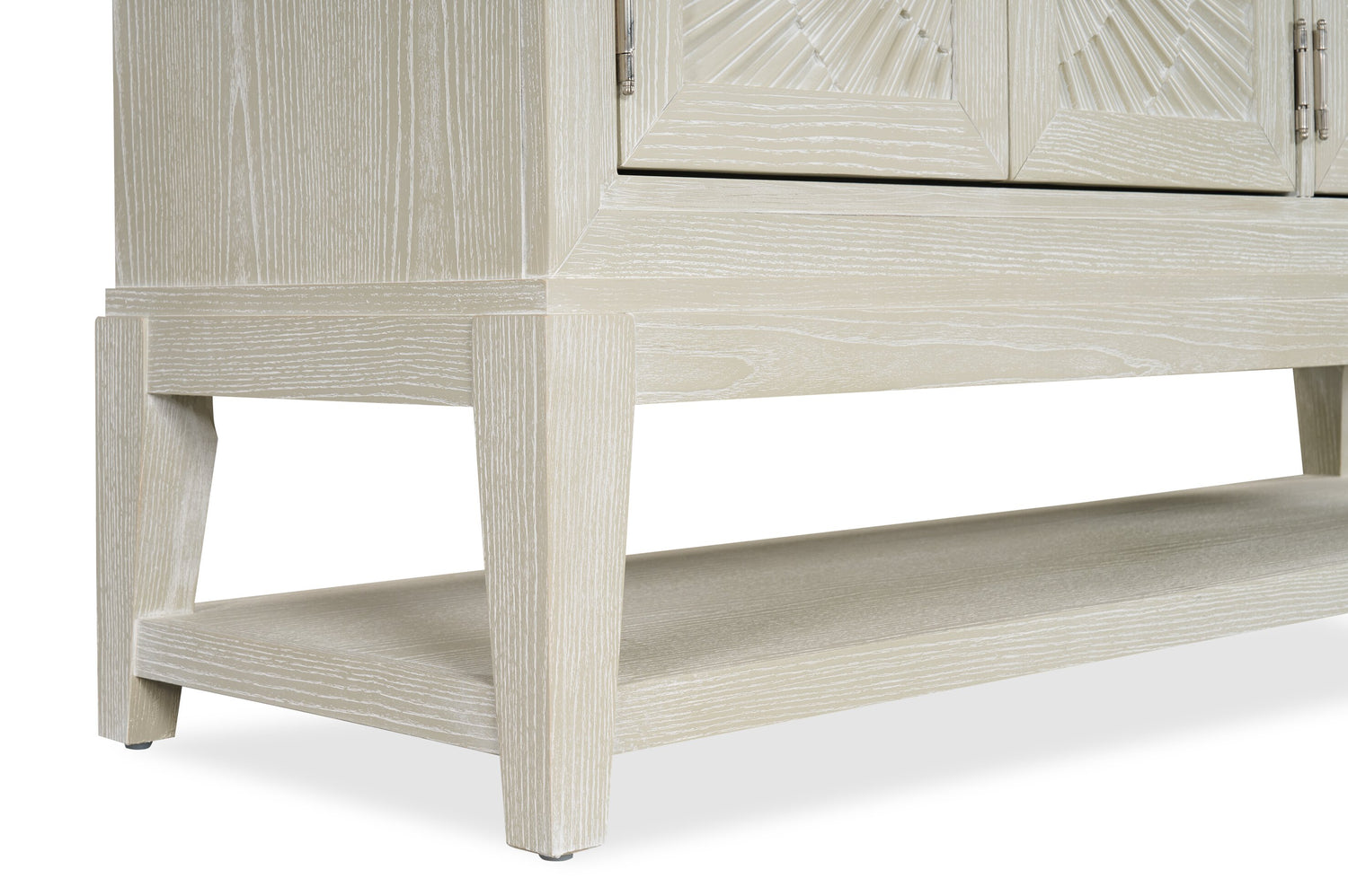 | Storage Options | Two cabinets with one adjustable shelf each and a bottom shelf. |