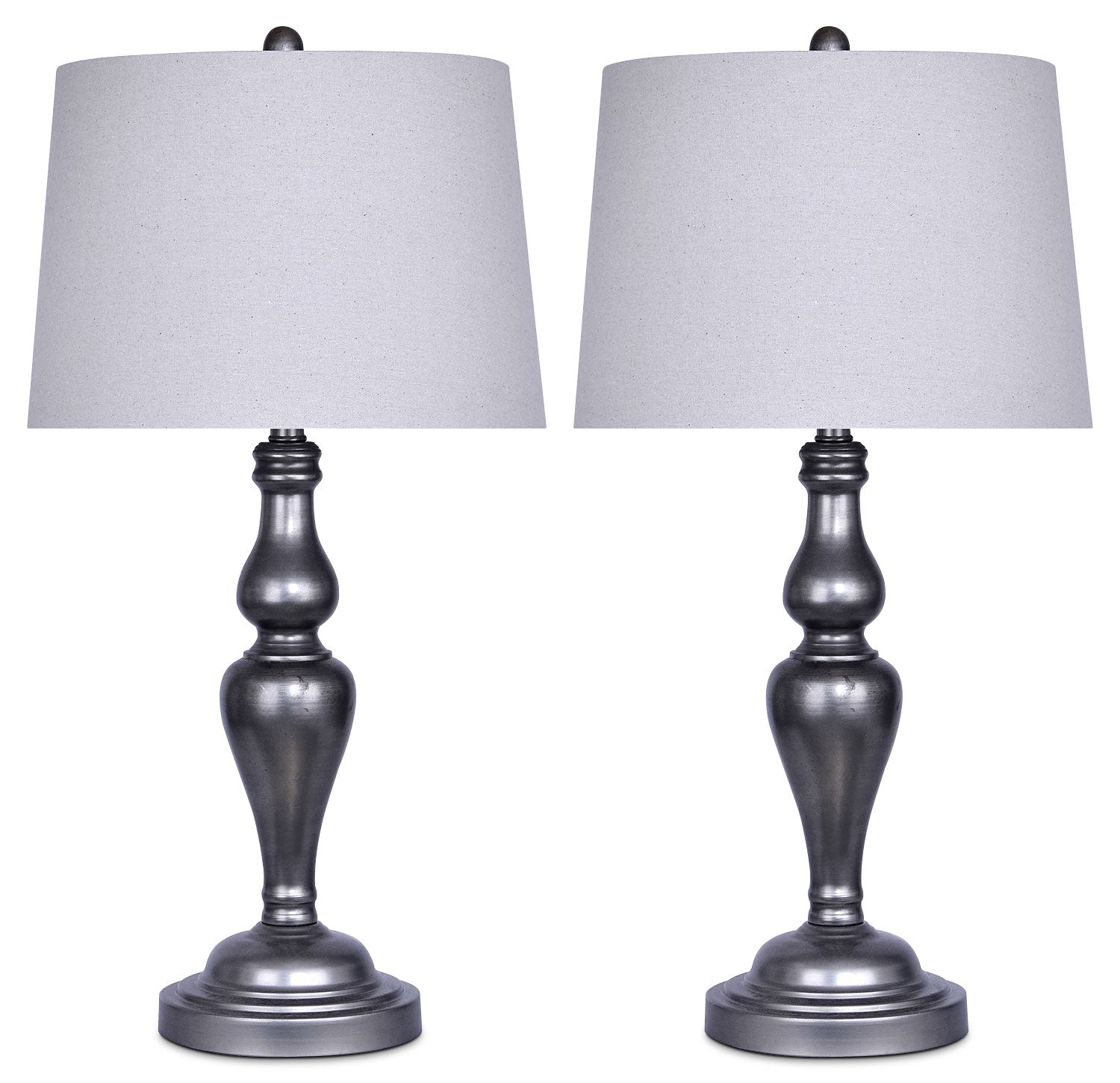 Add chic lighting to your space with this two-piece table lamp set. A vintage metal finish covers the beautifully curved bases to create stunning accents for your home. Topped with white linen shades, these lamps look great on your end tables or even your nightstands. Plus, you can choose your desired level of brightness using the three-way power switch.