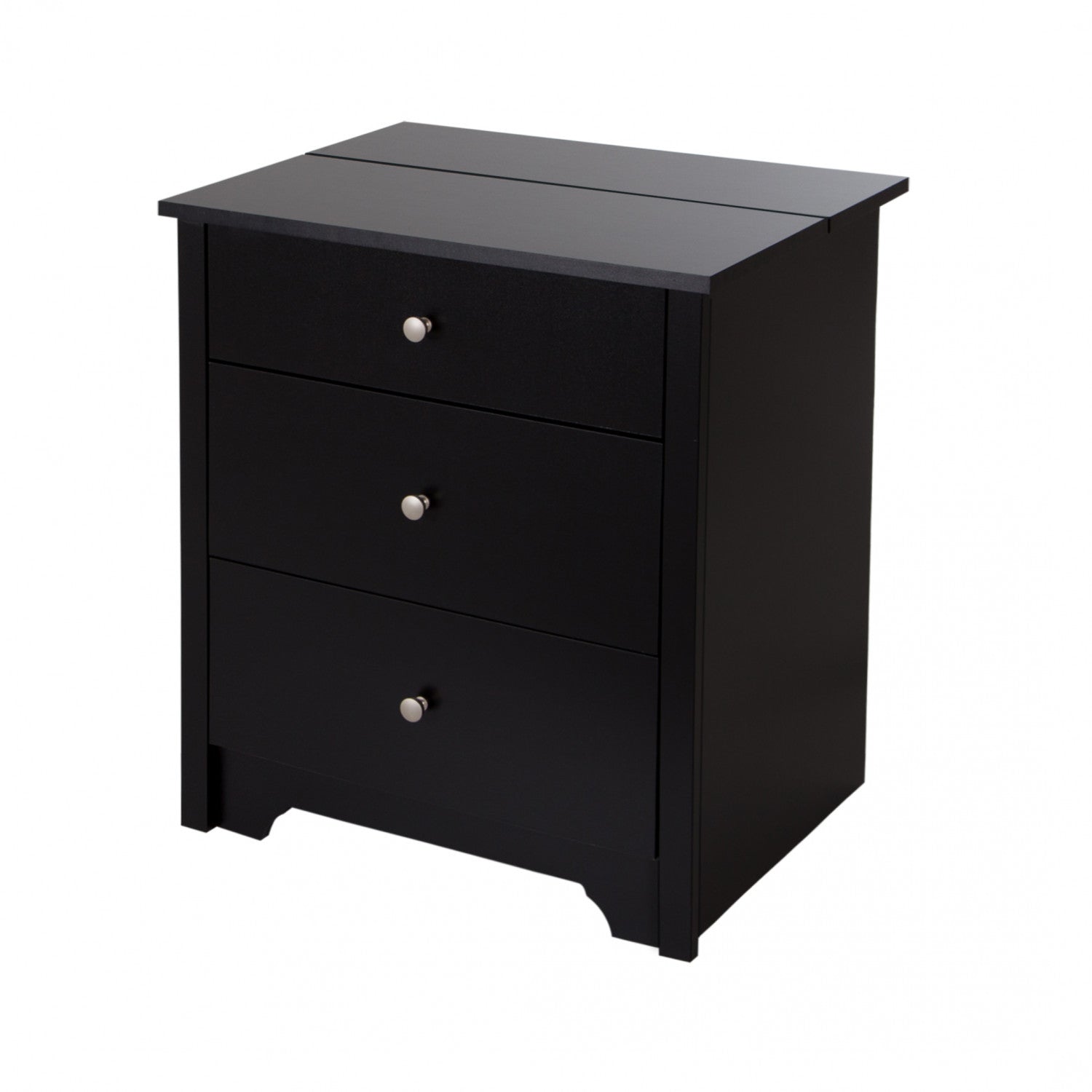 Contemporary nightstand. The vito nightstand features modern convenience and transitional craftsmanship, for a great blend of minimalist style and functionality. It’s more than a nightstand, since you can slide the tray out and convert it into a charging station. The bedside furniture features 2 spacious drawers for storing reading material and personal items, both finished with smooth metal drawer slides and knobs, along with a sturdy table top and a sliding tray for electronics management. Convenient charging stationhalf of the bedside nightstand’s top tray slides out, giving you easy access to the charging station without having to move the items on top. Under the lower sliding piece are a fixed shelf and power bar, so devices can be plugged in with the cords hidden inside the furniture. When charging devices with the tray closed, cords can be passed through a groove, so phones or tablets can still be seen. The nightstand also features simple efficient cord management, as wires pass through the space in the back of the bedside cabinet.