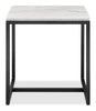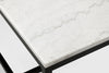 | Accent Details | A matte black frame complements the light tabletop. The white marble top is elevated by subtle black undertones. |