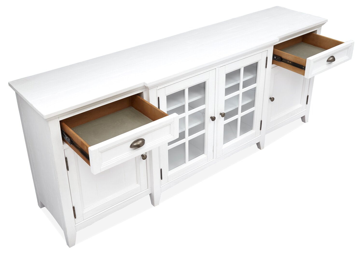 | Drawer Glides | Side-Mounted Metal Ball-Bearing Situated on both sides of the drawer, these metal glides move smoothly thanks to ball bearings tucked inside each slide. These glides are strong, and will support even the heaviest junk drawer. |