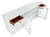 | Hardware | Aged pewter drawer cup handles and cabinet doorknobs. |
