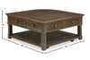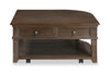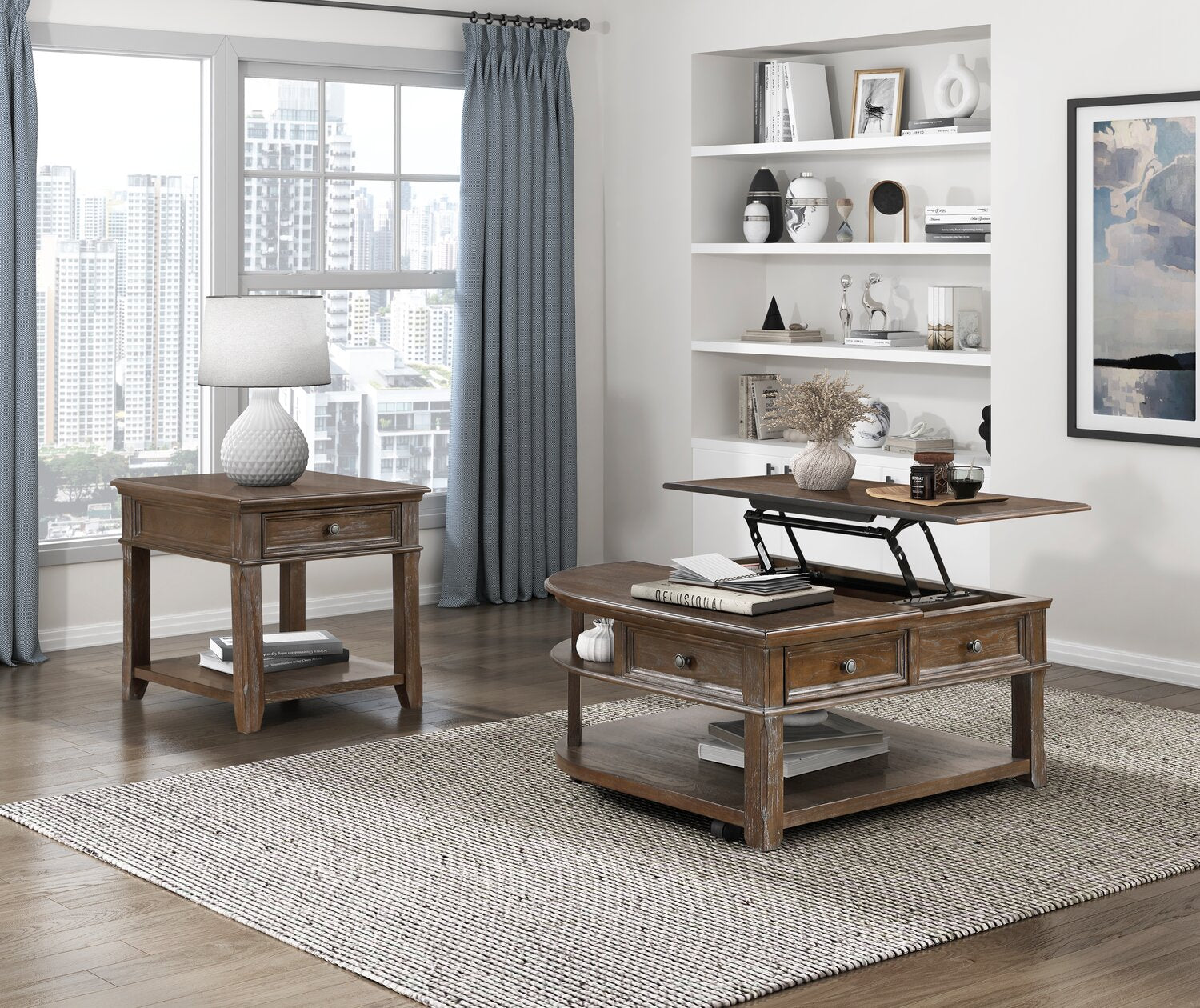 | Storage Options | Lift-top storage compartment, one drawer, one lower display shelf and two open cubbies. |