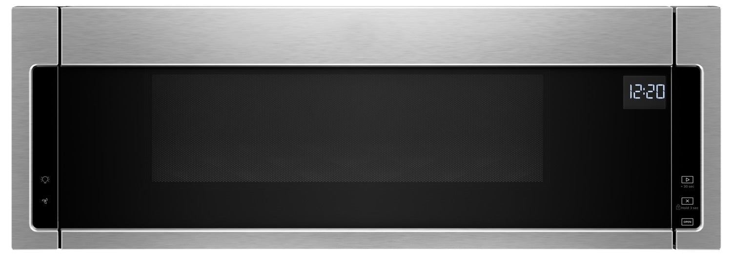 Free up some space in your kitchen with Whirlpool’s low-profile over-the-range microwave with hood fan. This small-space solution removes odours and steam with as much power as a standard-size hood, but is designed not to hang down past your cabinetry. Cook all the essentials quickly and evenly, with 1.1 cubic feet of purposeful capacity and 900 watts of cooking power. Touch controls and a tap-to-open door mean you can easily operate this microwave with just the touch of a finger.