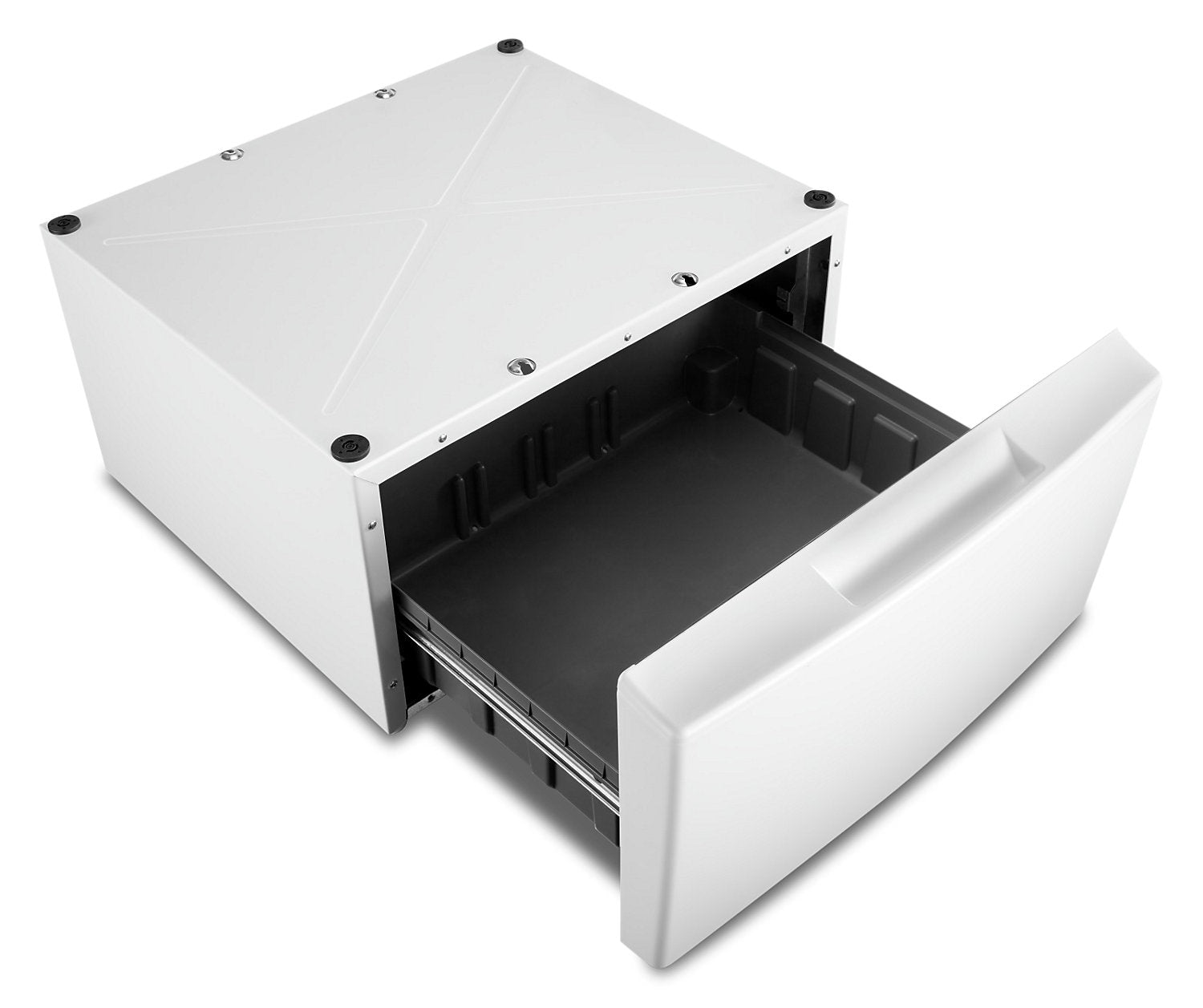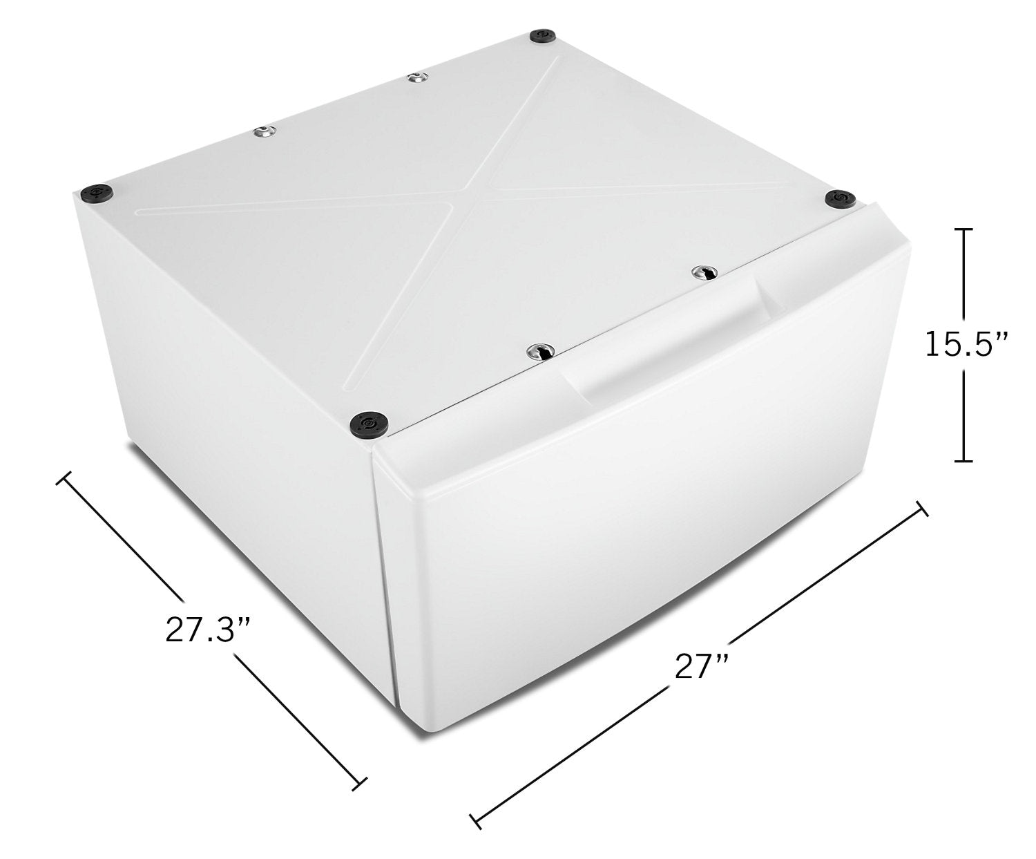 Chrome Handle Stylish handle makes it easy to open and close. Elevated for Comfort Laundry’s already a chore - why make it a pain? Reduce bending and back strain while doing laundry by elevating your washer and dryer to waist height. Storage Drawer Detergent, fabric softener, dryer sheets, washers balls; there are a litany of laundry accessories. Keep them organized and accessible with a handy storage drawer. |