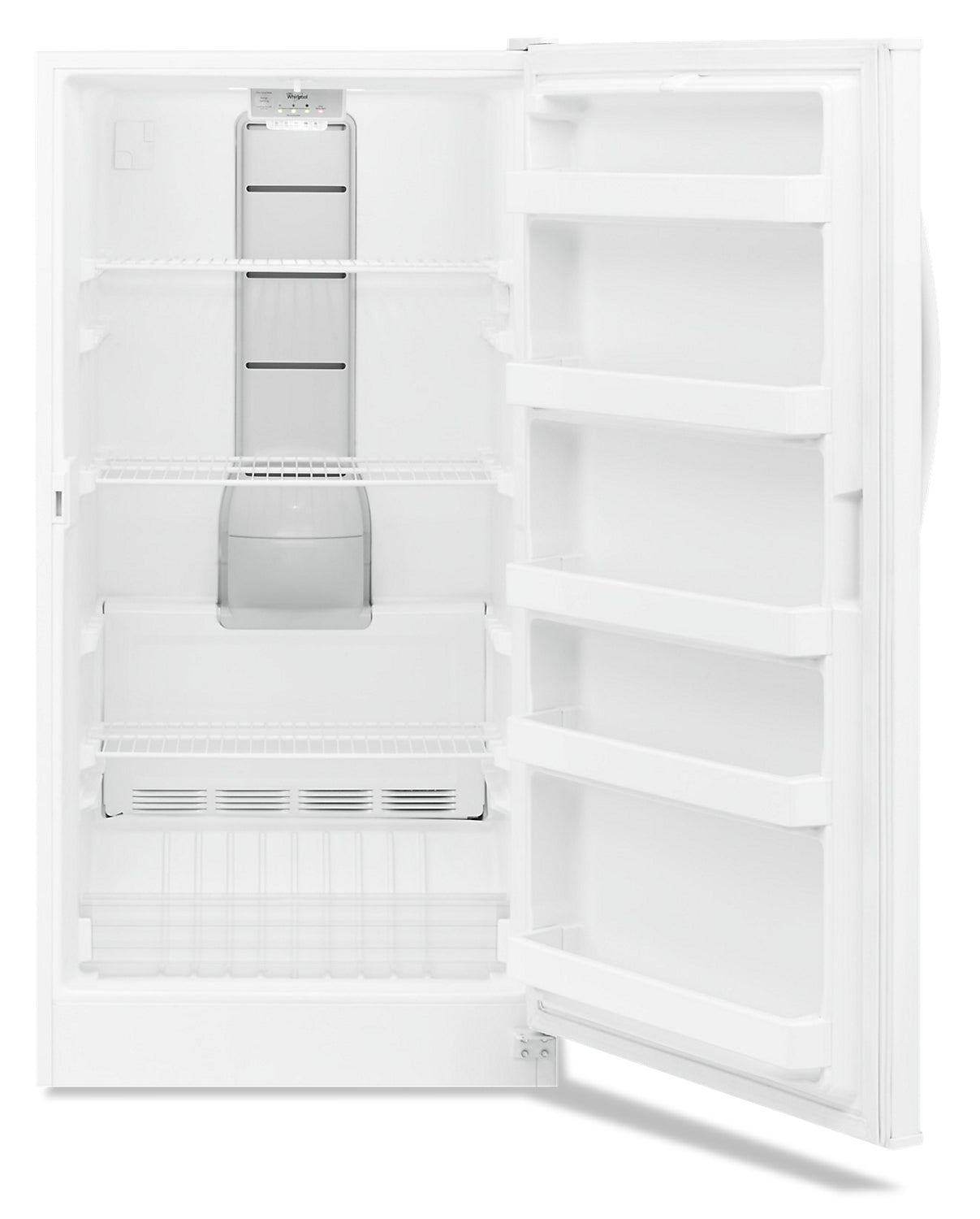 Put a spotlight on your frozen favourites inside this Whirlpool 16-cubic-foot upright freezer. Activating Fast Freeze quickly drops the temperature to help lock in freshness and flavour, and the temperature alarm will notify you if your food ever gets too warm. This upright freezer with LED lighting also automatically prevents frost build-up so you won’t have to worry about emptying the freezer for a messy, manual defrost. Plus, you can be sure there is plenty of ice on hand by adding the optional, easy-to-install ice maker.