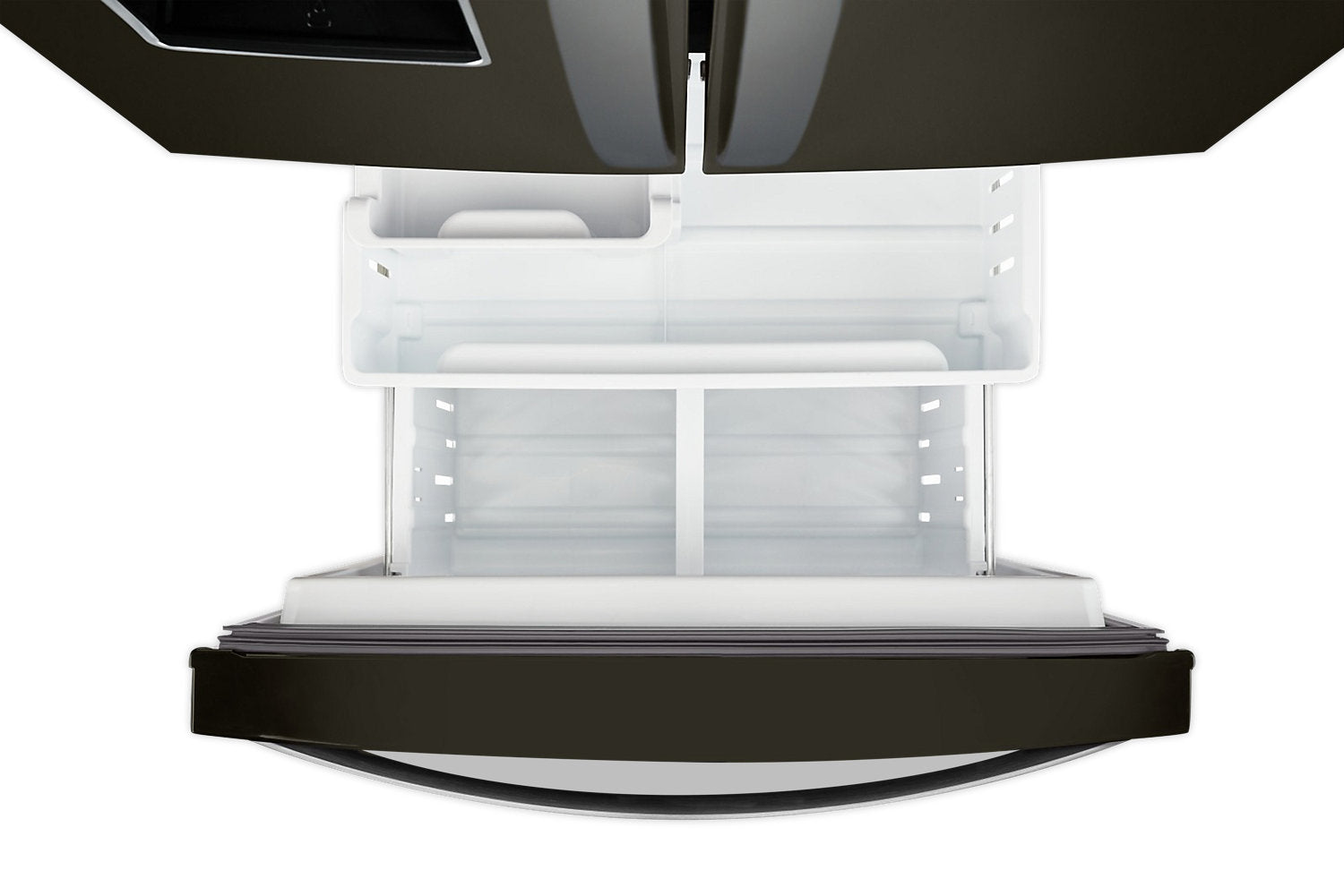 In this 20-cubic-foot Whirlpool wide French-door refrigerator you will find unique storage areas designed with you and your family in mind, with plenty of room for the goods you use the most. Use the condiment caddy for easy access to all of your favourite toppings and sauces, or pour yourself a fresh glass of filtered ice water from the exterior water dispenser. The humidity-controlled crispers and FreshFlow™ produce preserver allow your fruits and veggies to stay fresher longer, while the adjustable gallon door bins add loading flexibility when and where your family needs it.