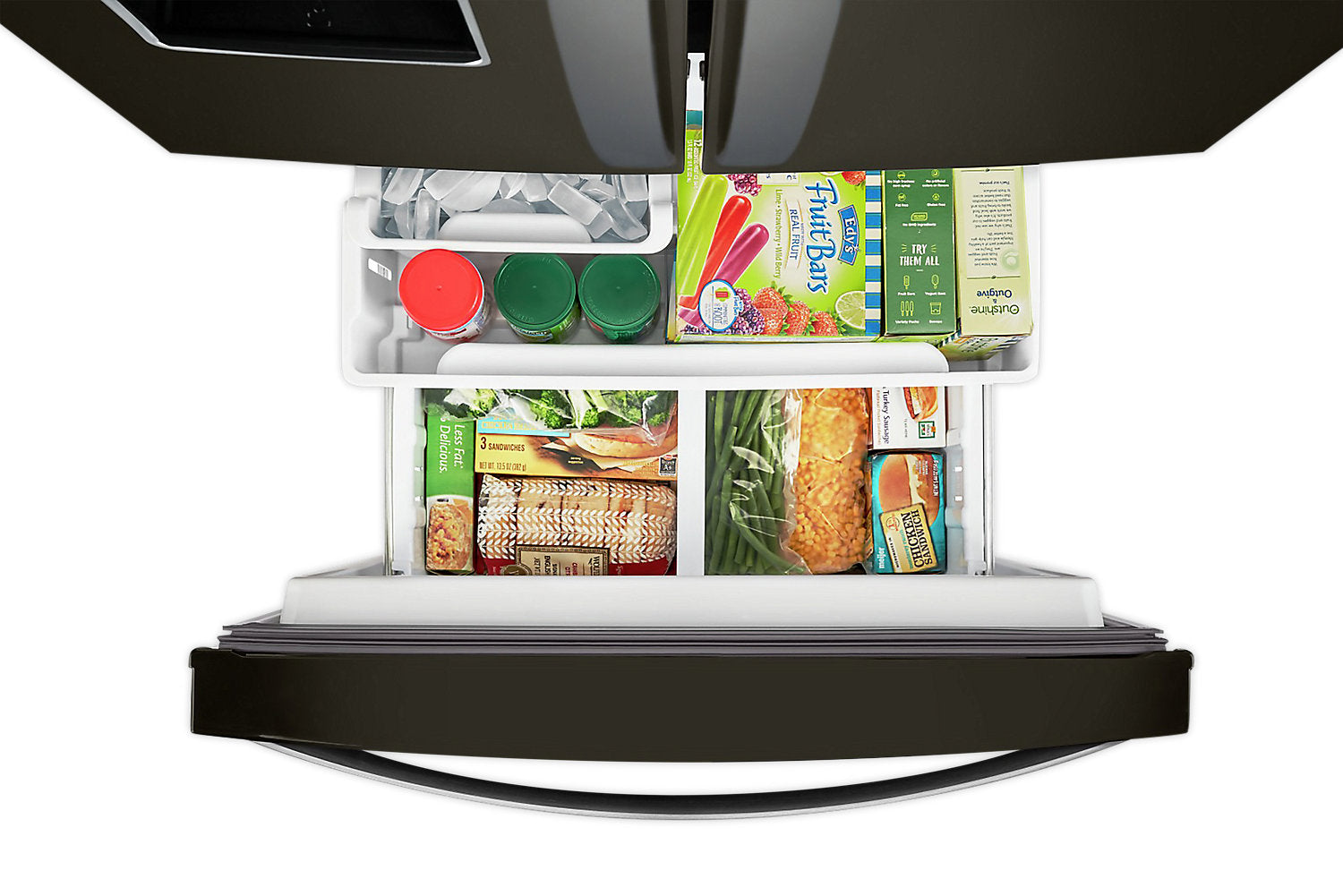 Humidity-Controlled Crispers: Adjustable Gallon Door Bins: Tuck Shelf: FreshFlow Produce Preserver: Spill Proof Glass Shelves: LED Interior Lighting: Fingerprint Resistant: Compact 30" Width: Exterior Water Dispenser with EveryDrop® Filtration: Full-Width Pantry Drawer: Condiment Caddy: Adaptive Defrost: Factory-Installed Ice Maker: FreshFlow™ Air Filter: Fast Cool Option: |