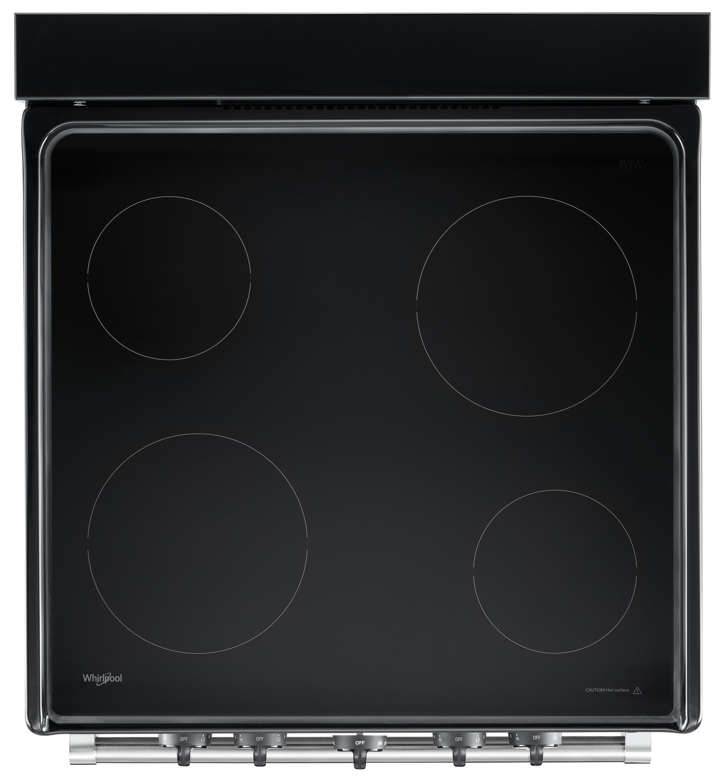 Serve up something for everyone, even in tight kitchens, with this Whirlpool 24-inch electric range. When messes happen, the upswept porcelain-coated steel cooktop easily wipes clean and contains spills, so you can save time cleaning up. Conveniently store your pots and pans in the storage drawer located directly under the oven to amplify the cabinet space in smaller kitchens. Perfect for apartments and condos, this compact range is a space-saving solution that doesn’t compromise on style and power.