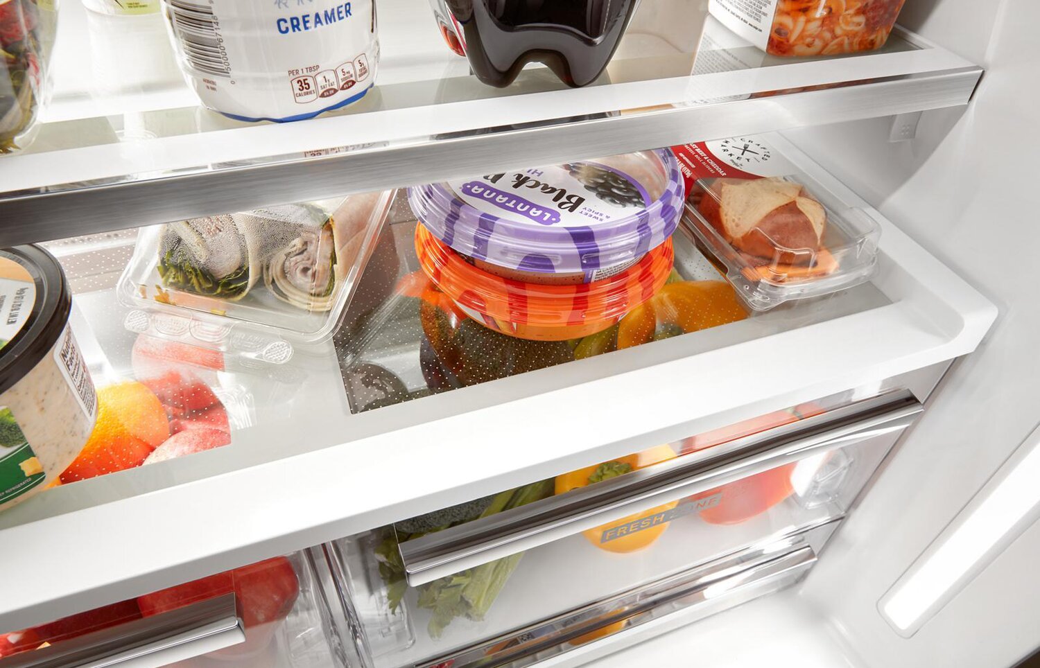 Freezer-to-Fridge Zone: EasyView™ Freezer: In-Door-Ice® and Water: Triple Evaporation System: Counter-Depth Design with Easy-Reach Shelves: Pull-Out Freezer Shelves: Tuck Shelf: Tap Touch Controls: |