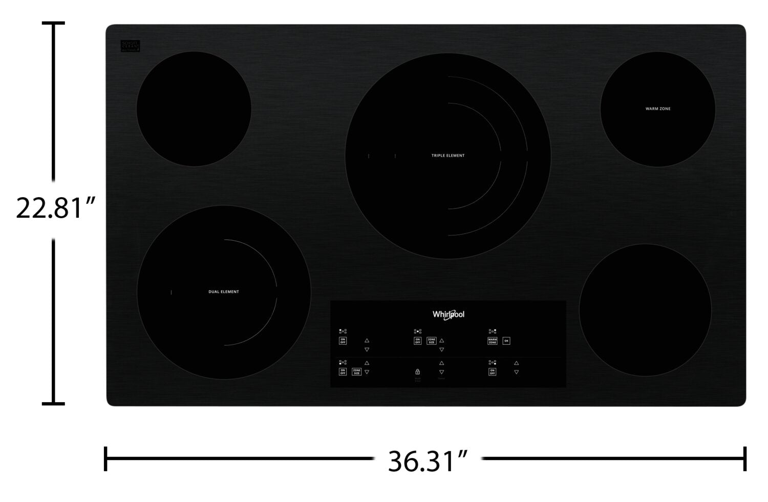 FlexHeat™ Triple Radiant Element: Tap Touch Controls: Warm Zone: Control Lock Mode: Easy-Wipe Ceramic Glass Cooktop: Five Element Cooktop: Wall Oven Compatible: Hot Surface Indicator Light: |