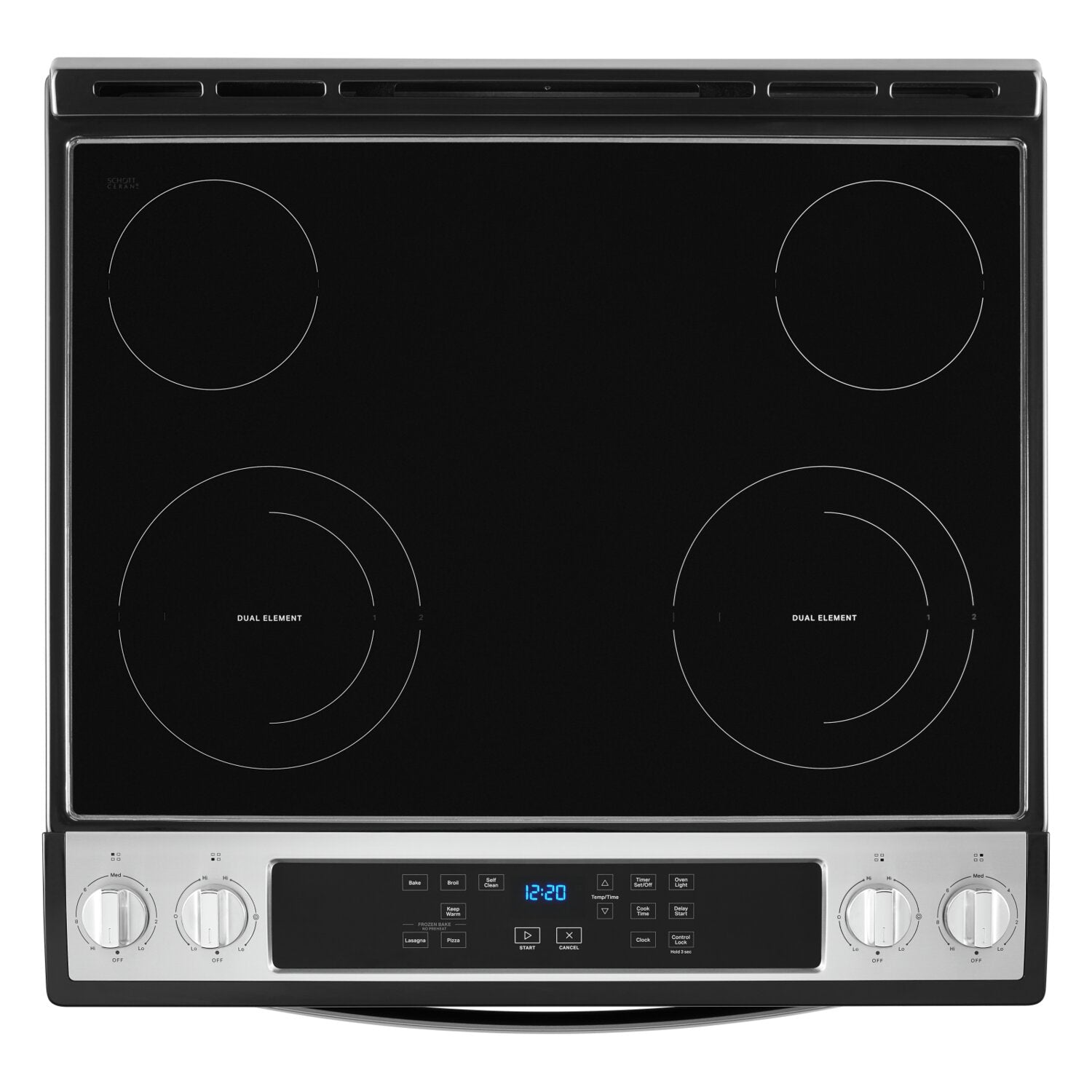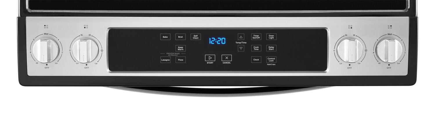 4.8-Cubic-Foot Capacity: Frozen Bake Technology: FlexHeat Dual Radiant Elements: Keep Warm Setting: Adjustable Self-Clean: Ceramic Glass Cooktop: |