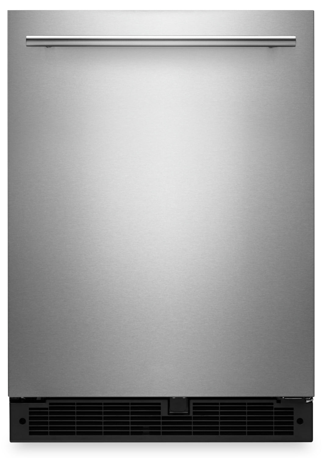 Stay organized in any kitchen or bar area with this 5.1-cubic-foot under-counter refrigerator from Whirlpool. Customizable temperature controls give you the power to store food and beverages exactly how you like them, plus a temperature sensor alerts you if the interior gets too hot. A fingerprint-resistant stainless steel finish is easy to wipe clean, while LED interior lighting makes it easy to find your favourite snack.