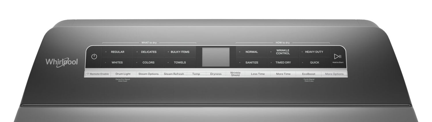 Make laundry the easiest chore on your list thanks to the powerful features of this 7.4-cubic-foot Whirlpool electric dryer. Smart features help you streamline your laundry routine, so you can keep your day moving - simply connect to Wi-Fi and download the Whirlpool app on your smart device. Intuitive controls help you choose the very best cycles for all your fabrics, plus you can create up to 35 custom cycles to use anytime. Save time and energy by switching on EcoBoost™, the option that uses less heat while still providing a powerful dry.