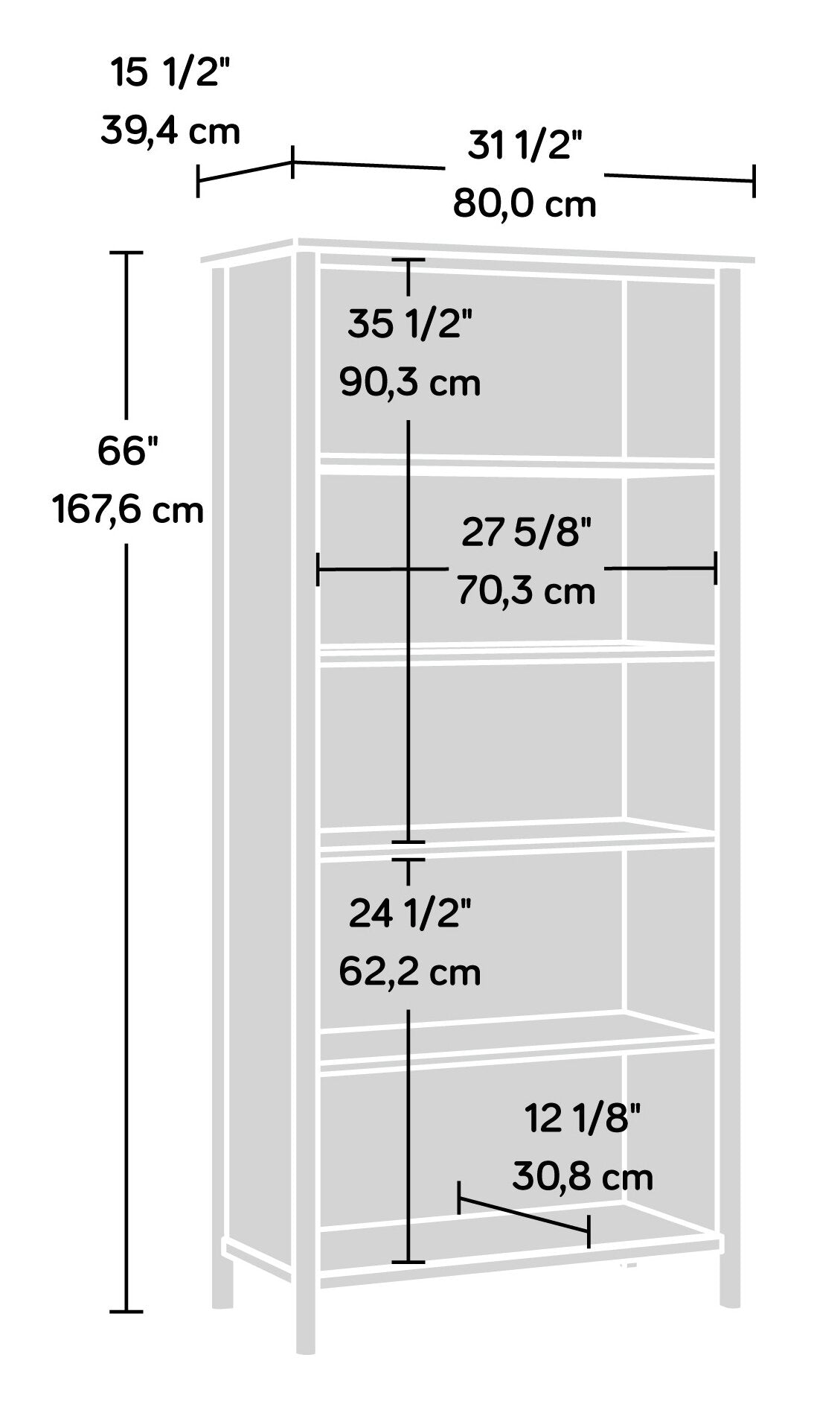 Width: 31.50" (80.0 cm) Height: 66.14" (168.0 cm) Depth: 15.51" (39.4 cm)