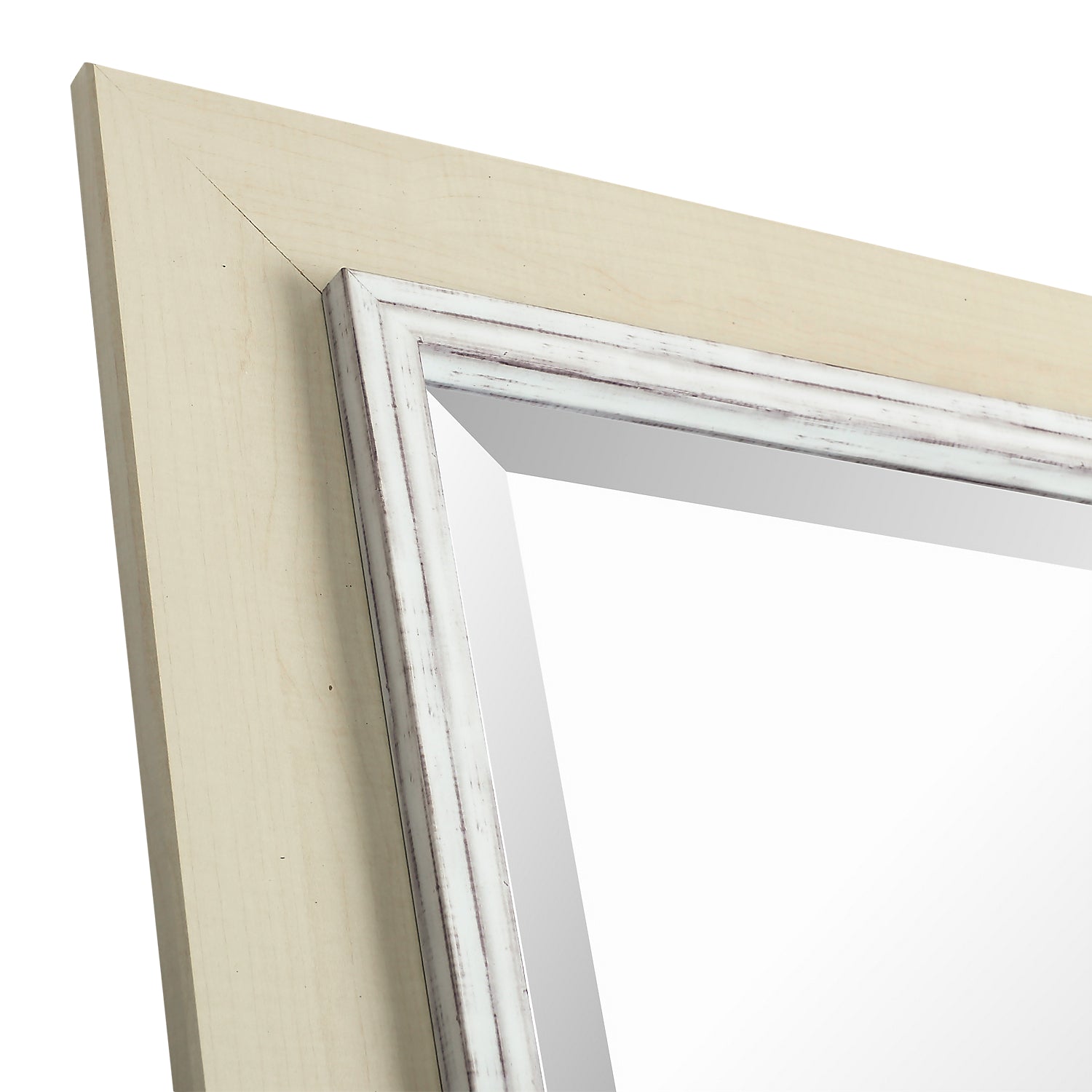 With antiqued white paint around the glass and a plain wood frame, this white mirror brings lots of farmhouse charm to your room. Beveled glass adds shape for an extra dynamic dimension. Place this mirror wherever it looks best with hooks on the back allowing it to be hung vertically or horizontally. Proudly made in Canada, this mirror brings a touch of rustic character to your space.