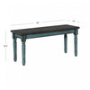 With a beautiful and calming blue finish, this bench will make a statement in your home. A burnished smoke finish on the seat provides a nice contrast with the teal blue dry brushed glaze finish and wormhole distressing on the base. The attention to detail in the design features of turned legs and chiseled edging make this set stand out. The bench adds extra seating and is a perfect match to the table and chairs, which are also available to complete the set. Some assembly required.