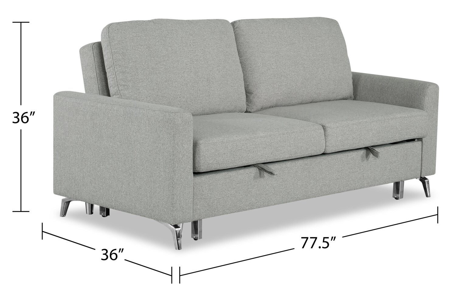 Width: 77.5" (196.9 cm) Height: 36" (91.4 cm) Depth: 36" (91.4 cm)