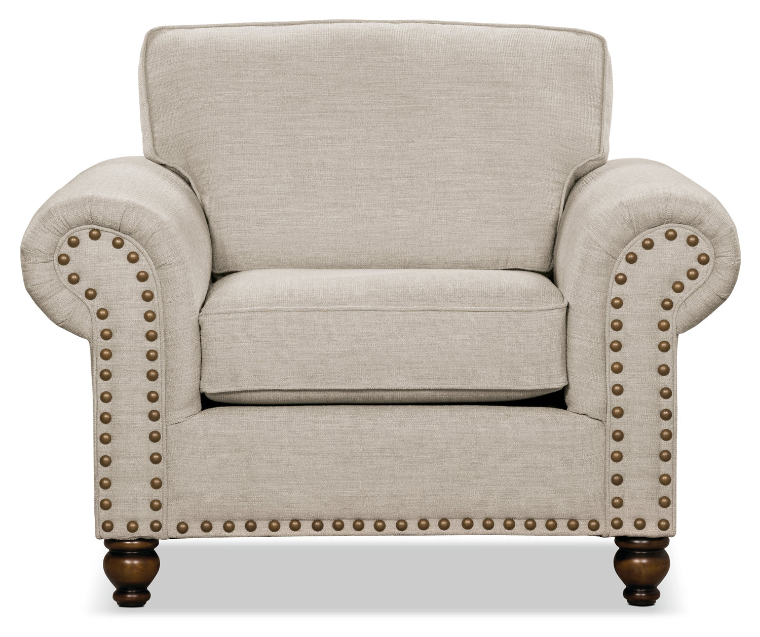 | Accent Details | Nail heads outline the base and armrests for a classic look. |