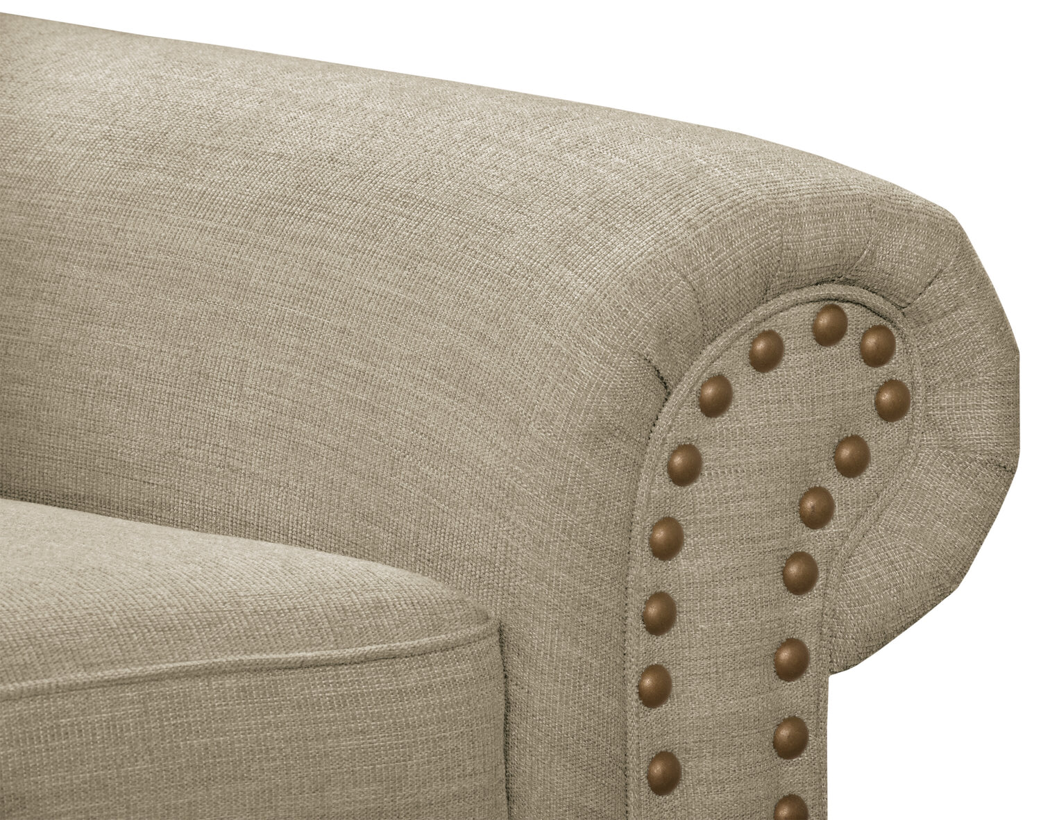 | Accent Details | Nail heads outline the base and armrests for a classic look. |