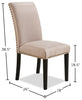 Freshen your home with this York studded dining chair. Covered in a clean canvas of neutral fabric, this soft seat invites you to relax on its supportive wood frame. Copper-coloured nailhead trim adds texture along the borders while lending a traditional feel to this chair. Of course, a chair's best quality is its comfort – and in this way the York gets top marks. High-density foam cushions the seat and backrest for a level of coziness you won't soon forget.