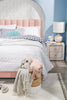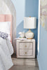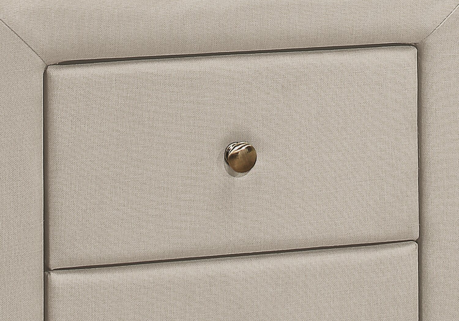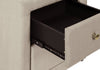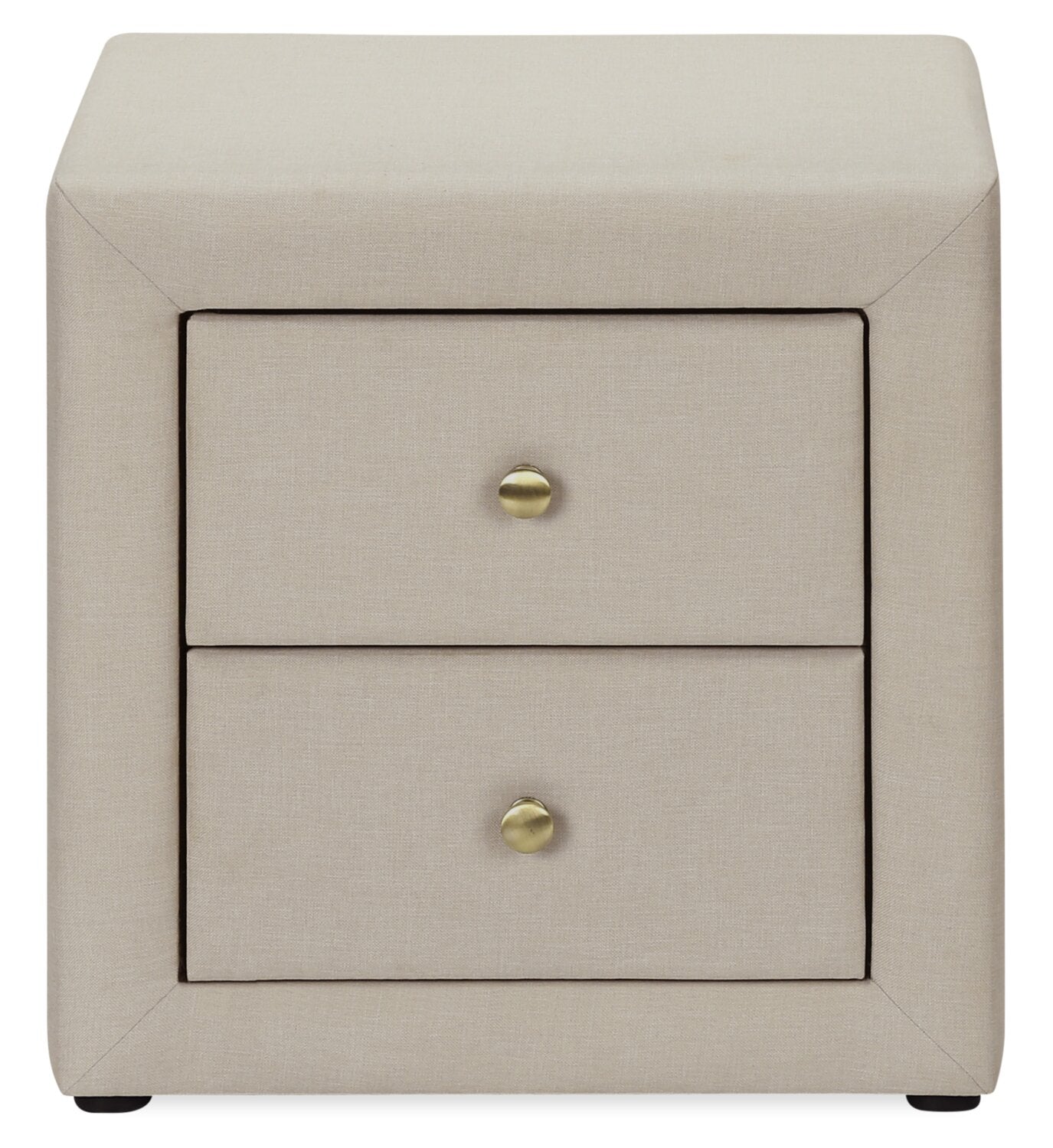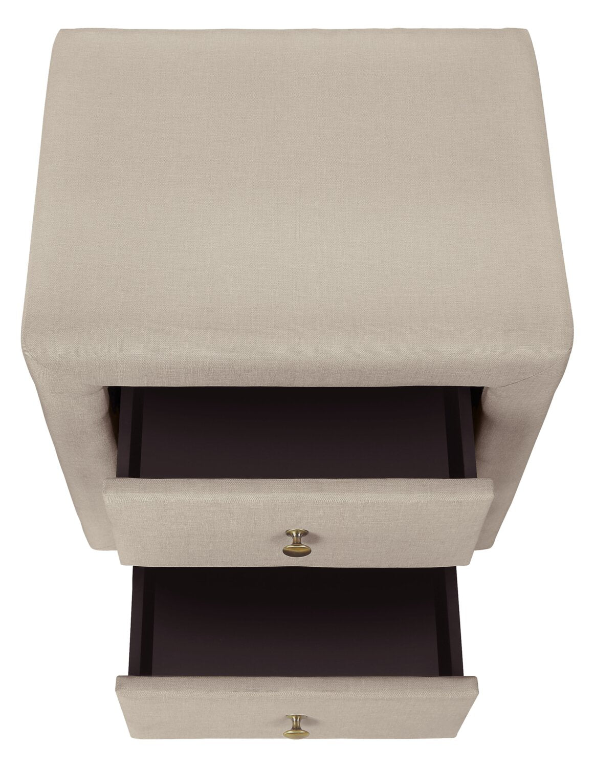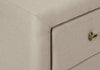 | Accent Details | Bronze-finished metal drawer knobs. |