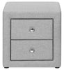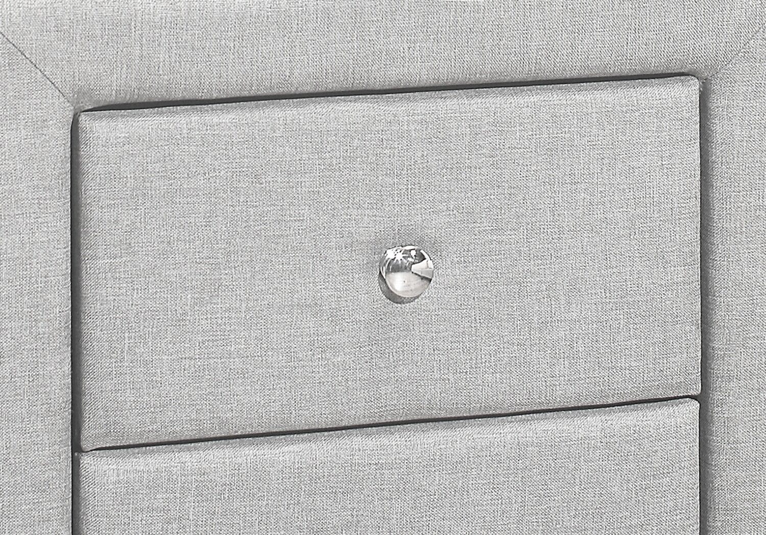 | Accent Details | Chrome-finished metal drawer knobs. |