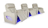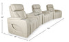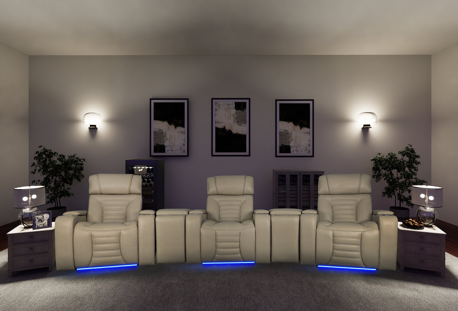 Transport yourself to a state of elevated relaxation with this Zen power reclining massage home theatre sectional. As you set to immerse yourself in a great film, smooth faux leather and high-density foam cushions envelope you in utmost comfort. Set the mood with soft LED lighting and bask in the convenience offered by the wireless USB charging port. Plus, keep your snacks and remotes close by in the storage console and armrests. Enjoy simple heated seating, therapeutic massaging and power reclining as you treat yourself to the best form of relaxation with the Zen and infuse tranquility into your home.